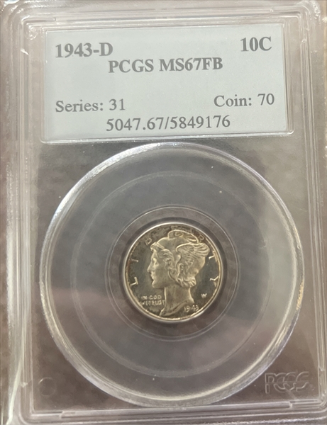 1943-D 10C, FB MS67FB 认证号05849176, PCGS号5047