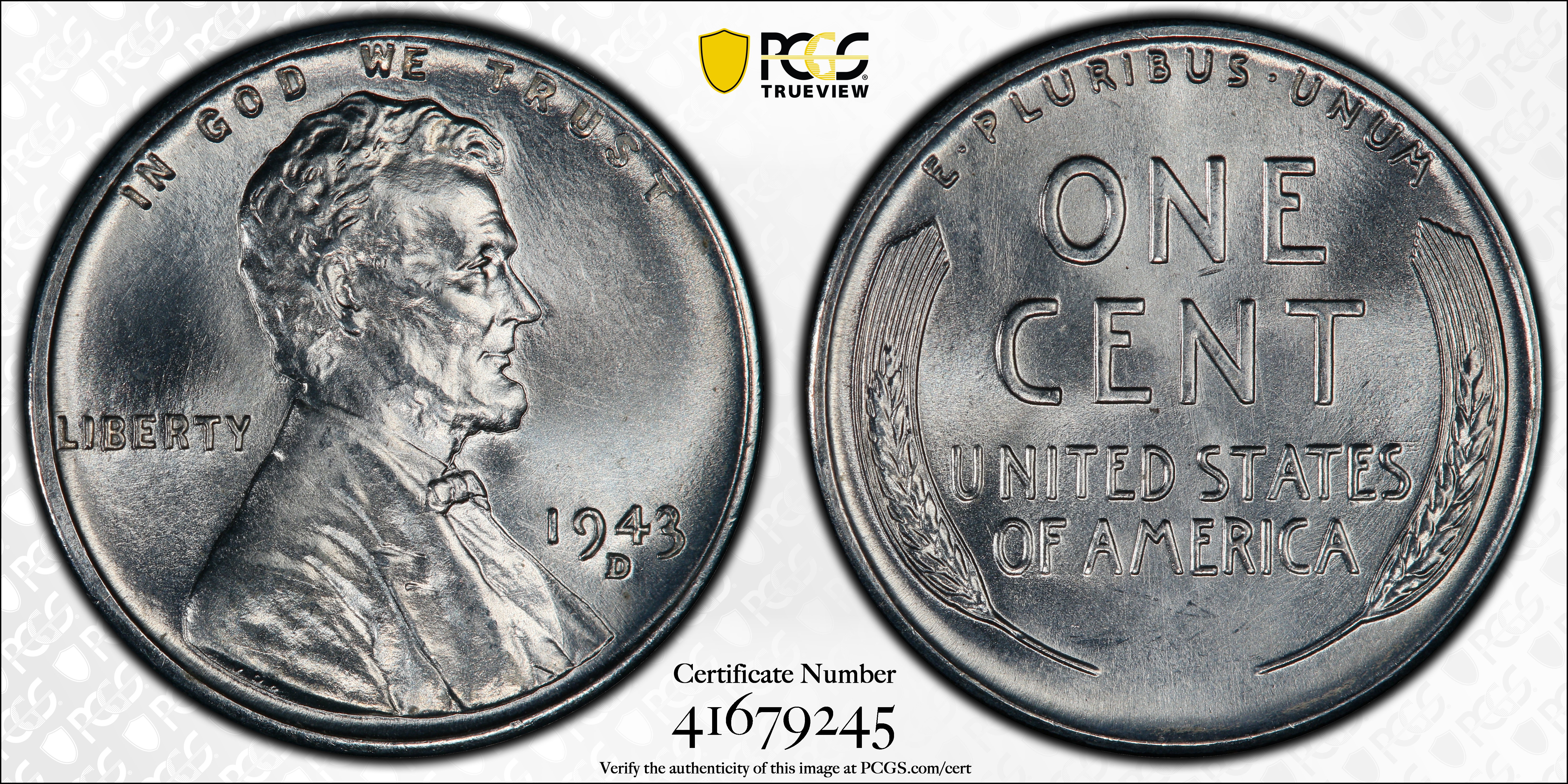 1943-D 1C MS67+ 认证号41679245, PCGS号2714