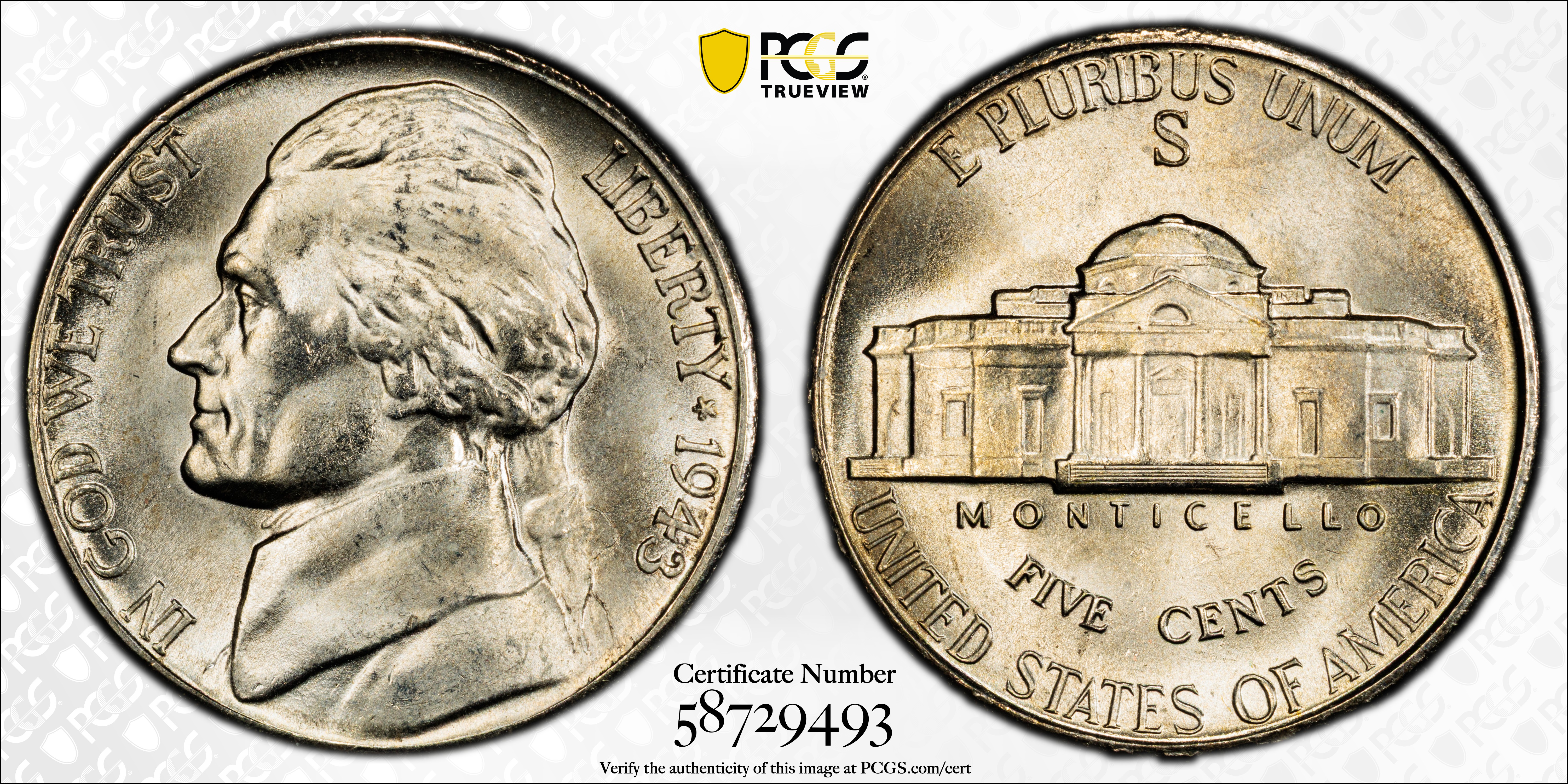 1943-S 5C, FS MS66FS 认证号58729493, PCGS号84021