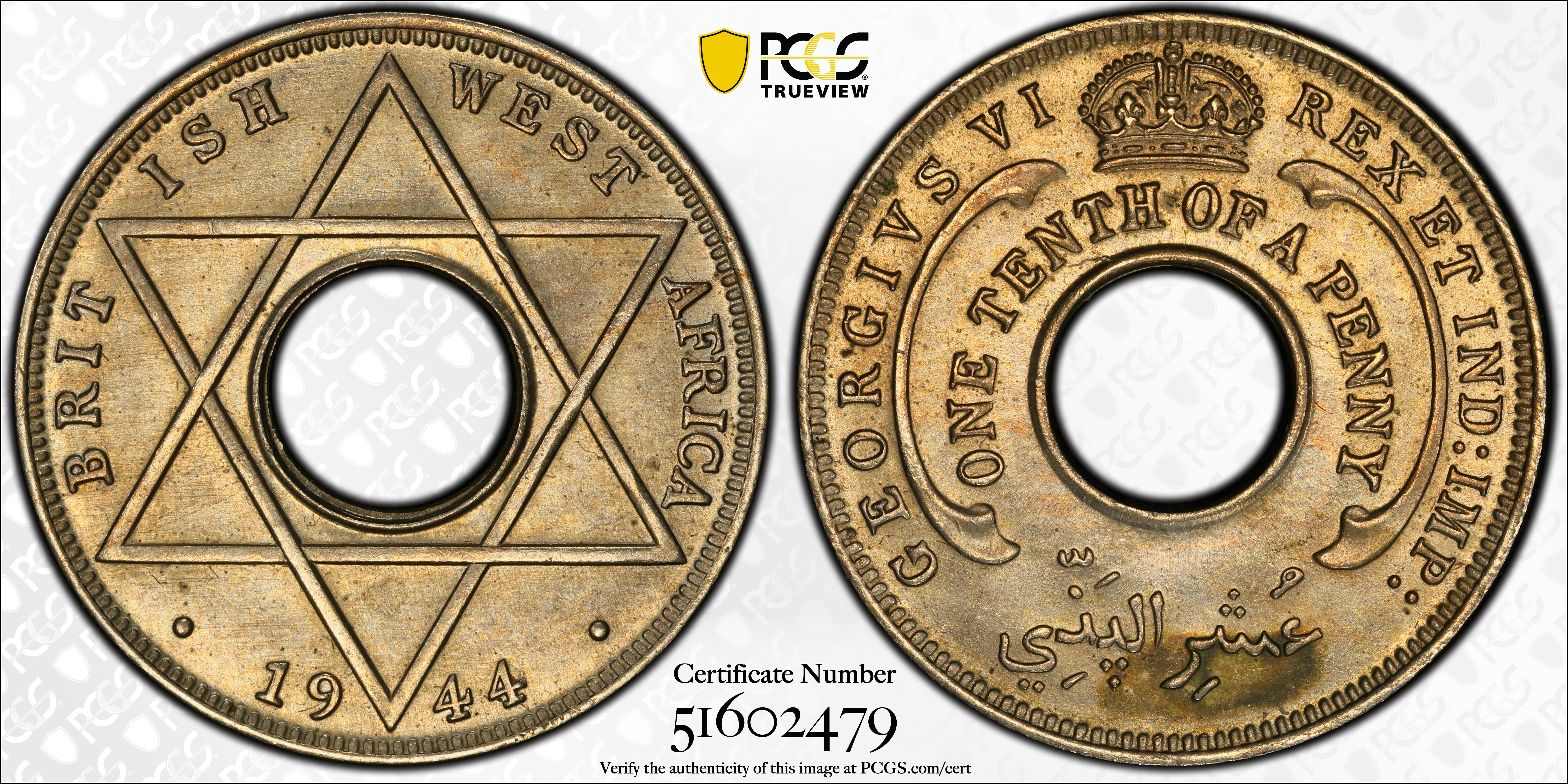 1944 1/10D MS64 认证号51602479, PCGS号274439