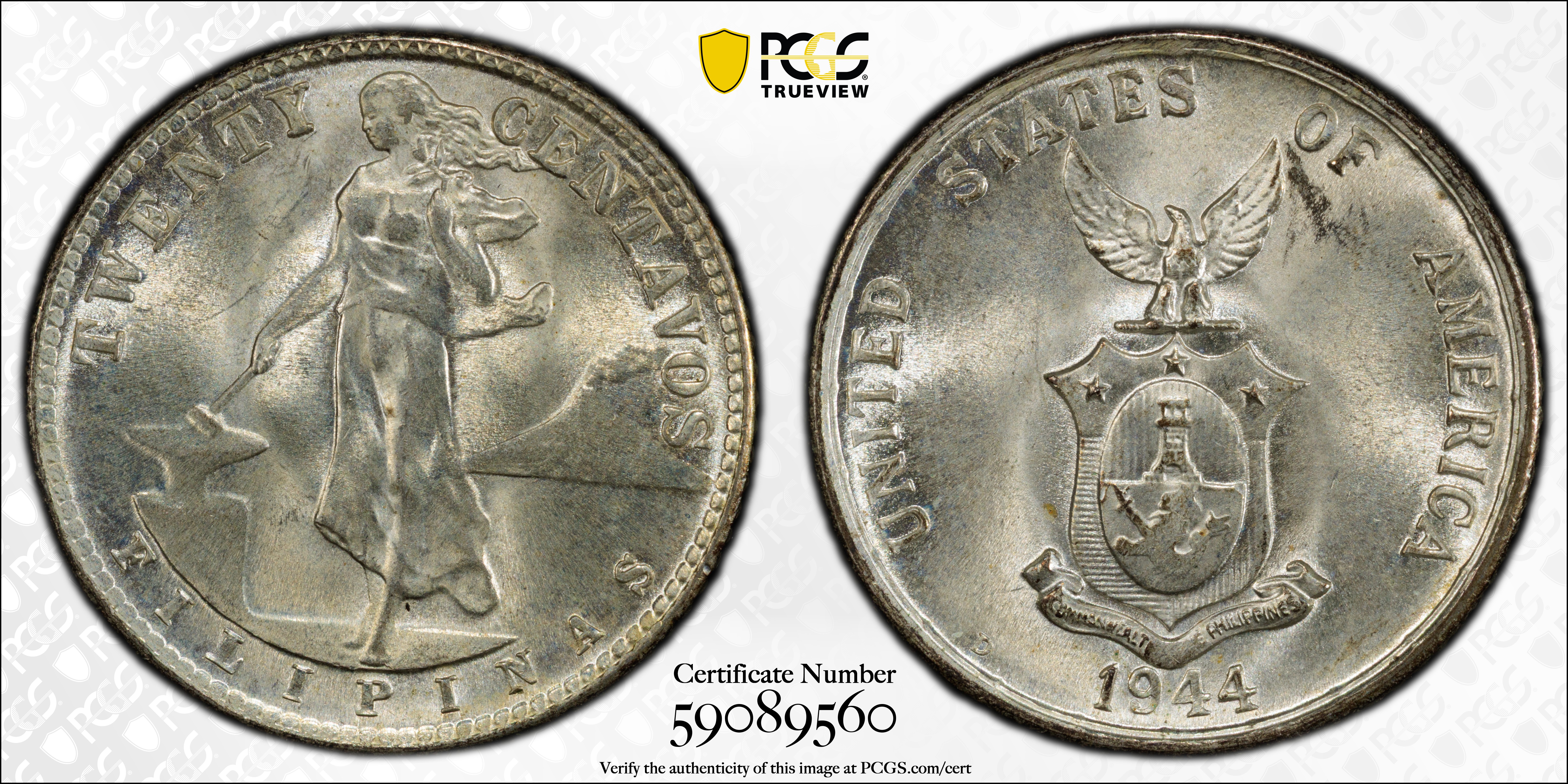 1944-D 20C MS65 认证号59089560, PCGS号90334