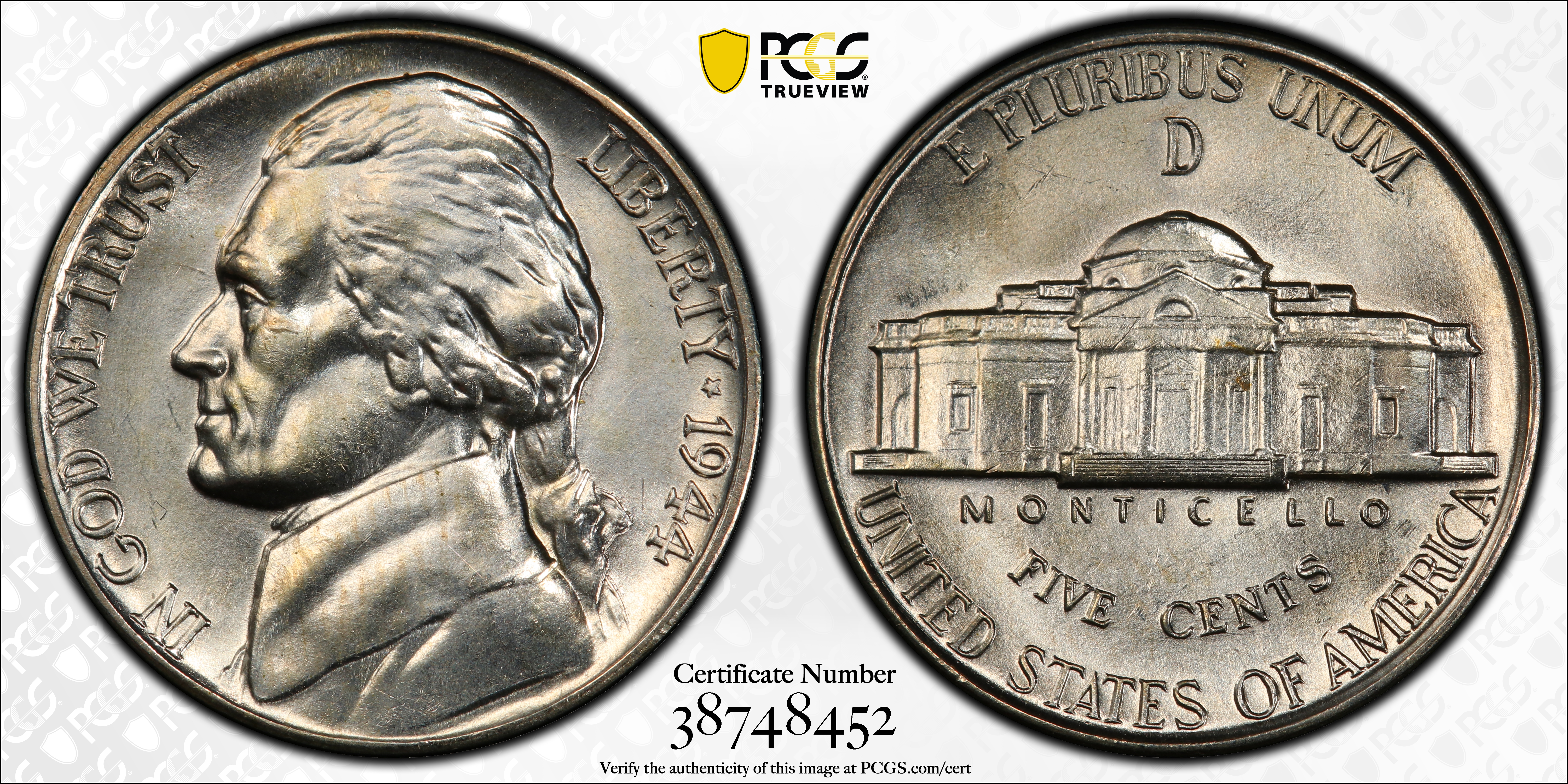 1944-D 5C, FS MS66FS 认证号38748452, PCGS号84023