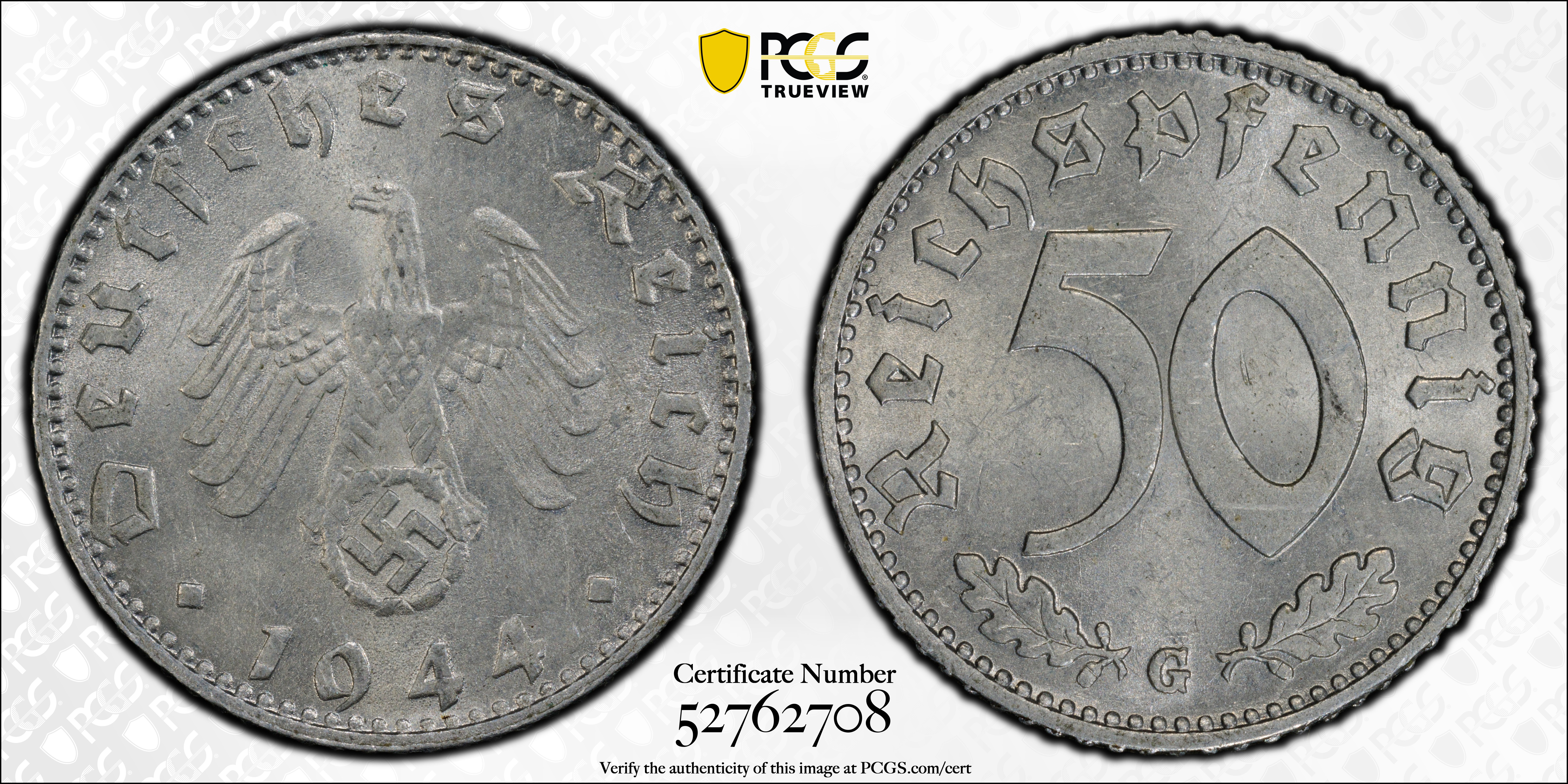 1944-G 50 Pfg J-372 MS63 认证号52762708, PCGS号302881