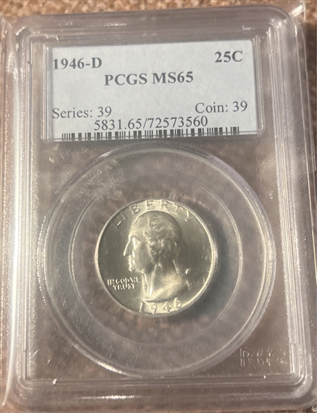 1946-D 25C MS65 认证号72573560, PCGS号5831