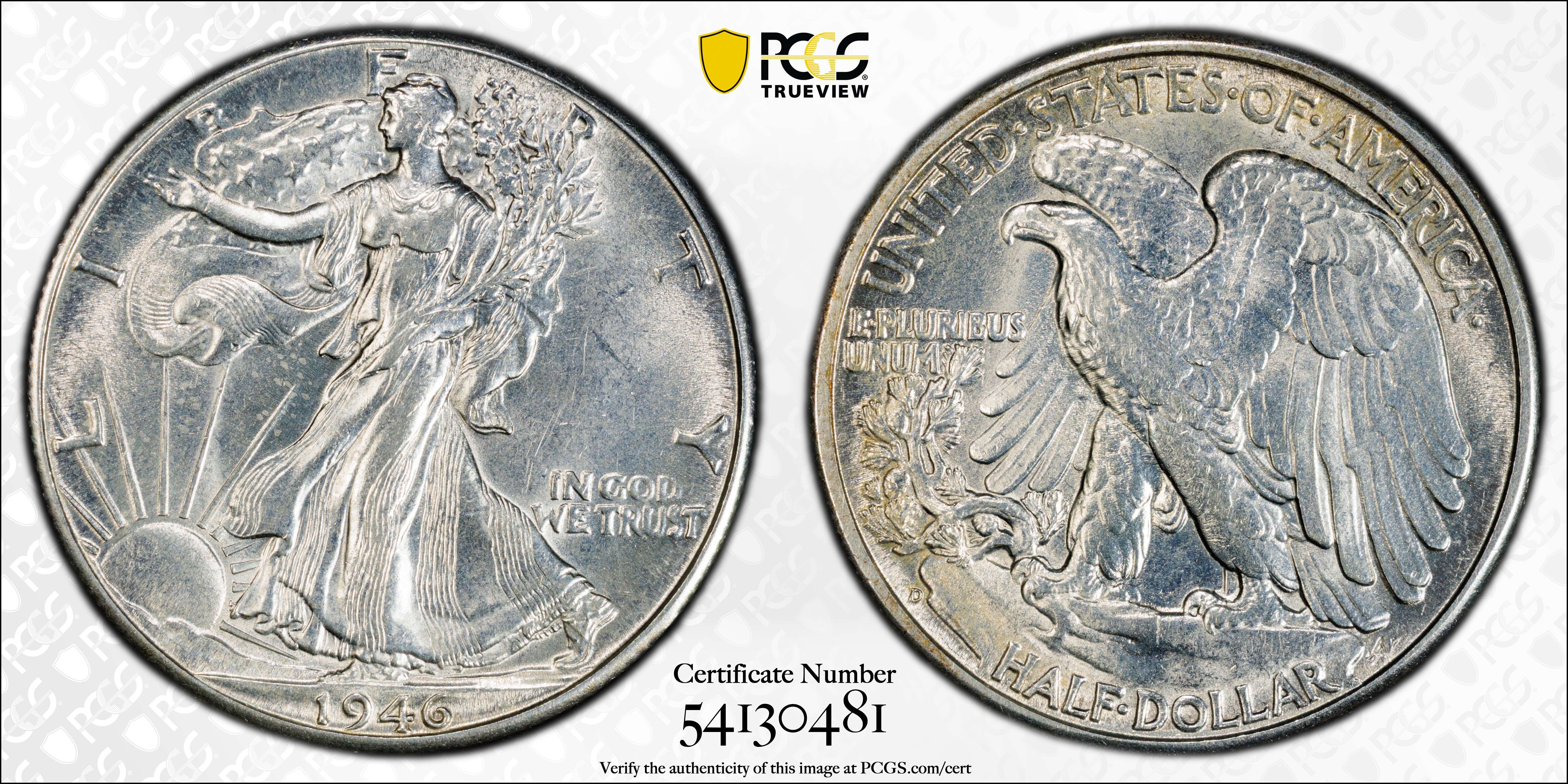 1946-D 50C AU58 认证号54130481, PCGS号6628