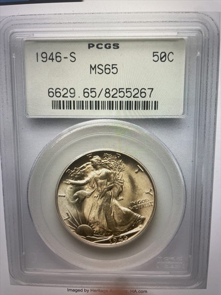 1946-S 50C MS65 认证号08255267, PCGS号6629