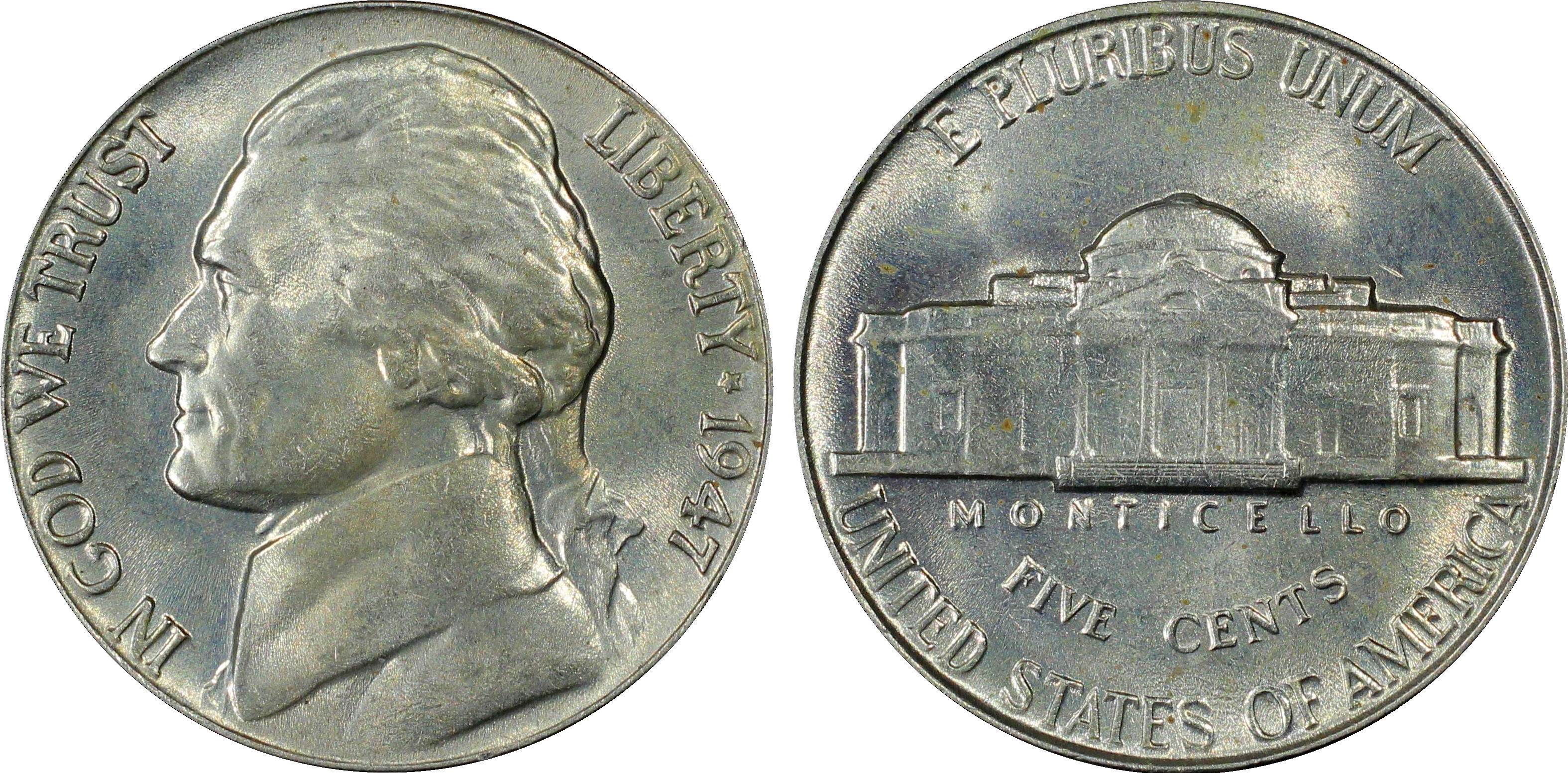 The 1947-P Jefferson Nickel is one of the more common issues in the series. Only in MS66 or higher is it scarce. With the Full Steps designation, it is also common up to about MS65 condition. In MS66 Full Steps it becomes scarce with a probably no more than one or two hundred examples known. In MS67 Full Steps it is really tough to find and less than a dozen or so examples exist, with few or no examples known in better condition.