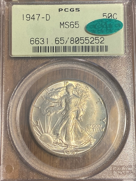 PCGS 1947-D 50¢ MS65 green CAC sticker