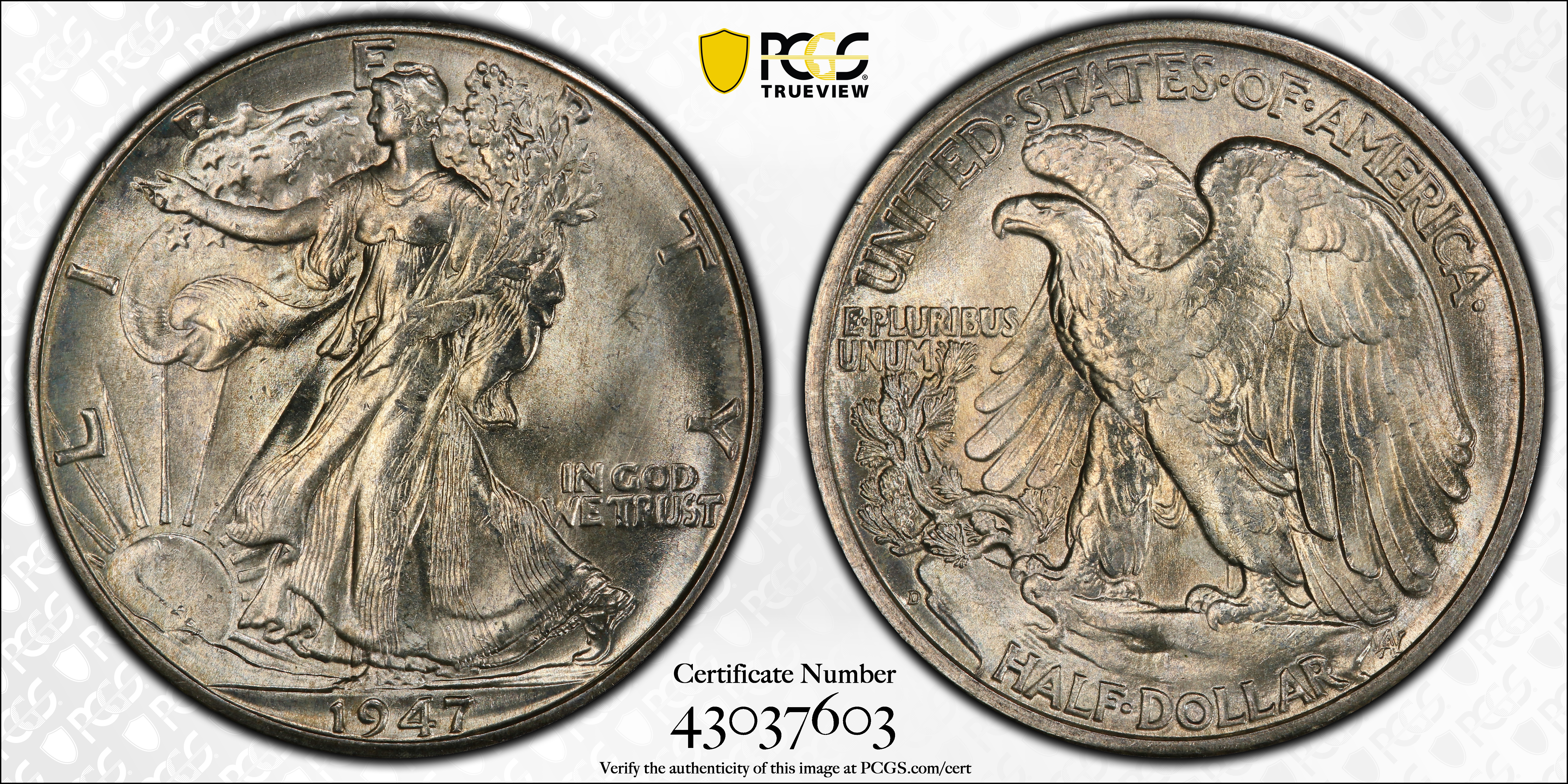 1947-D 50C MS66 认证号43037603, PCGS号6631
