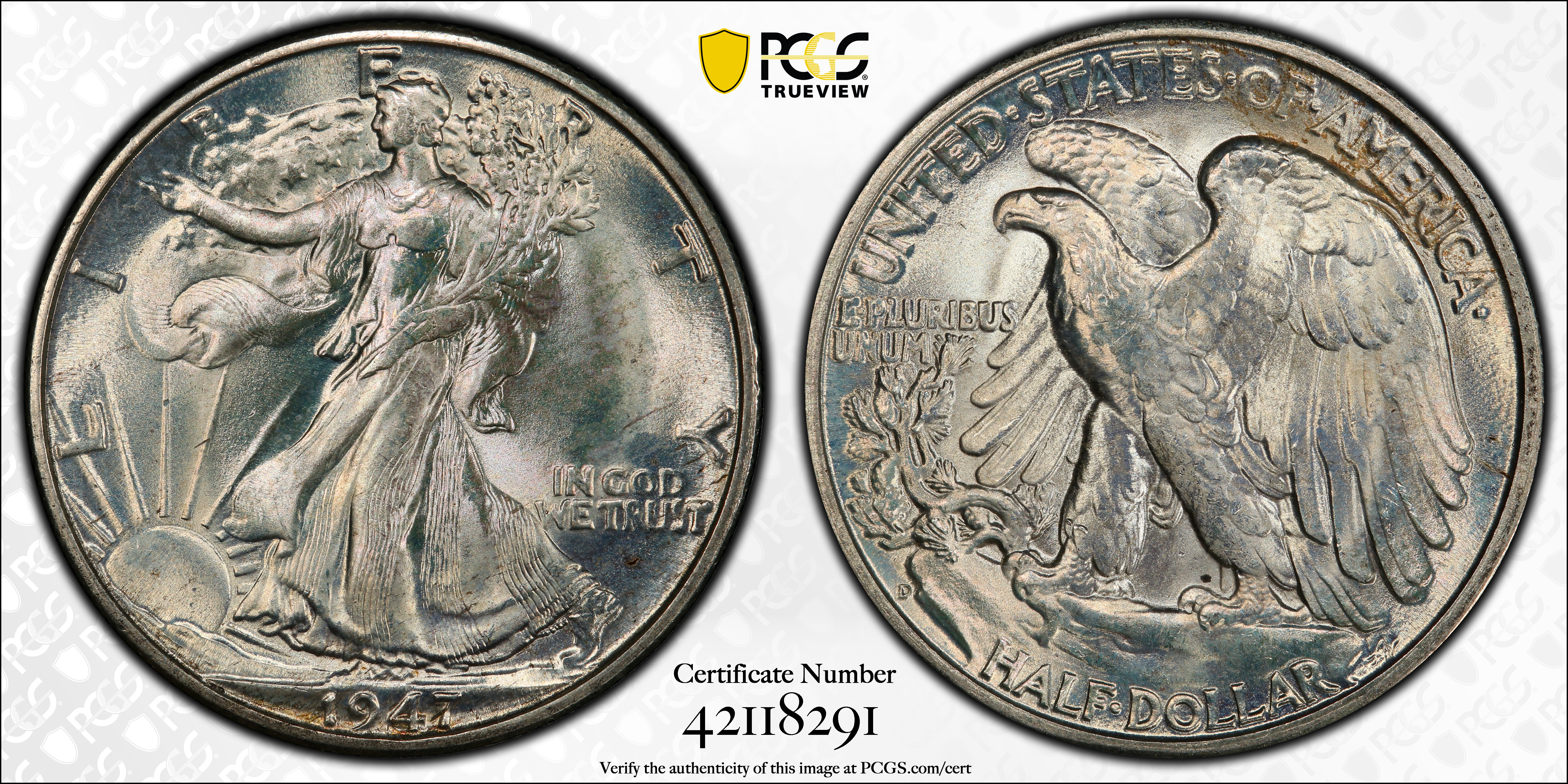 1947-D 50C MS67 认证号42118291, PCGS号6631
