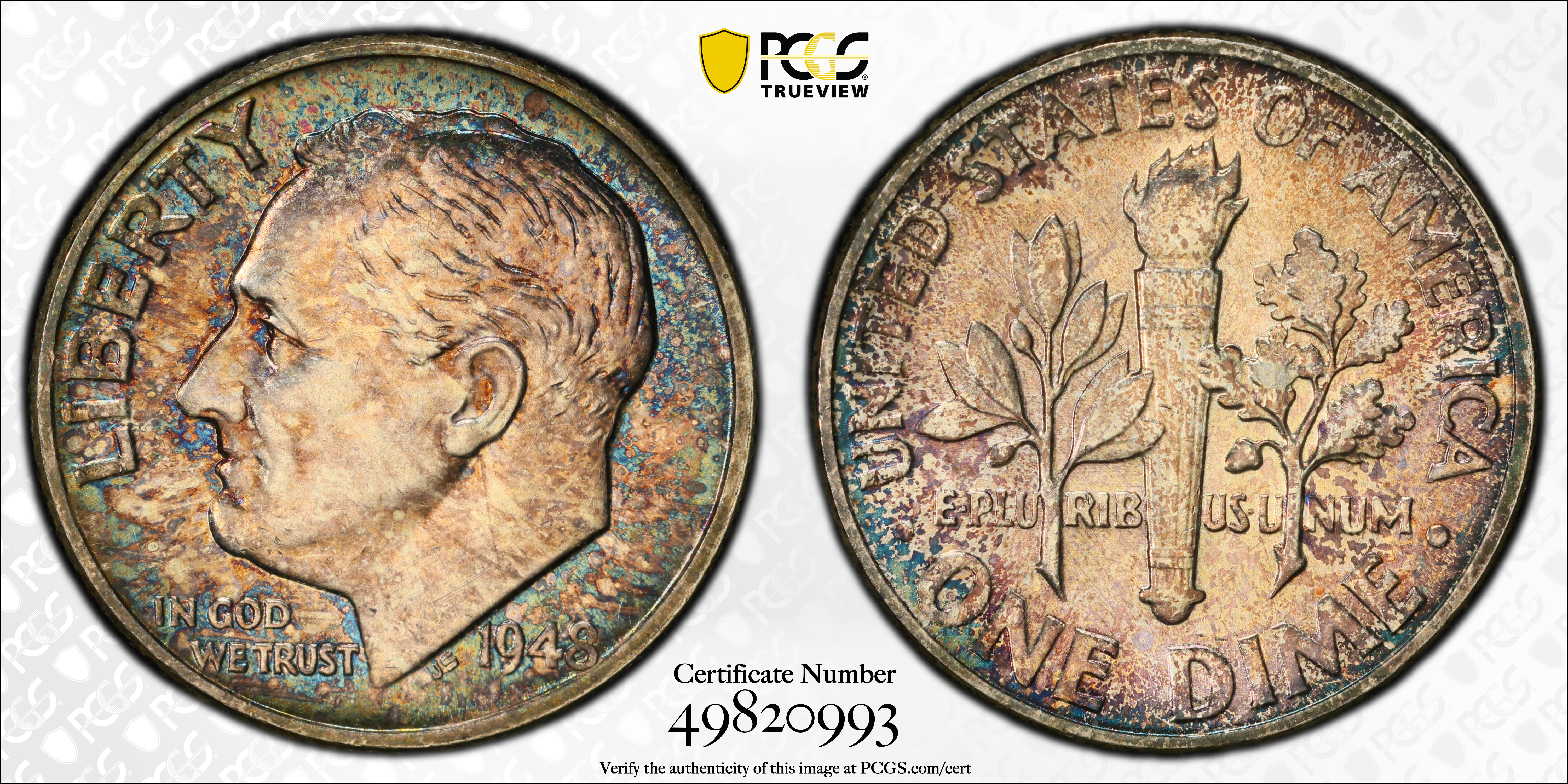 1948 10C, FB MS65FB 认证号49820993, PCGS号85088