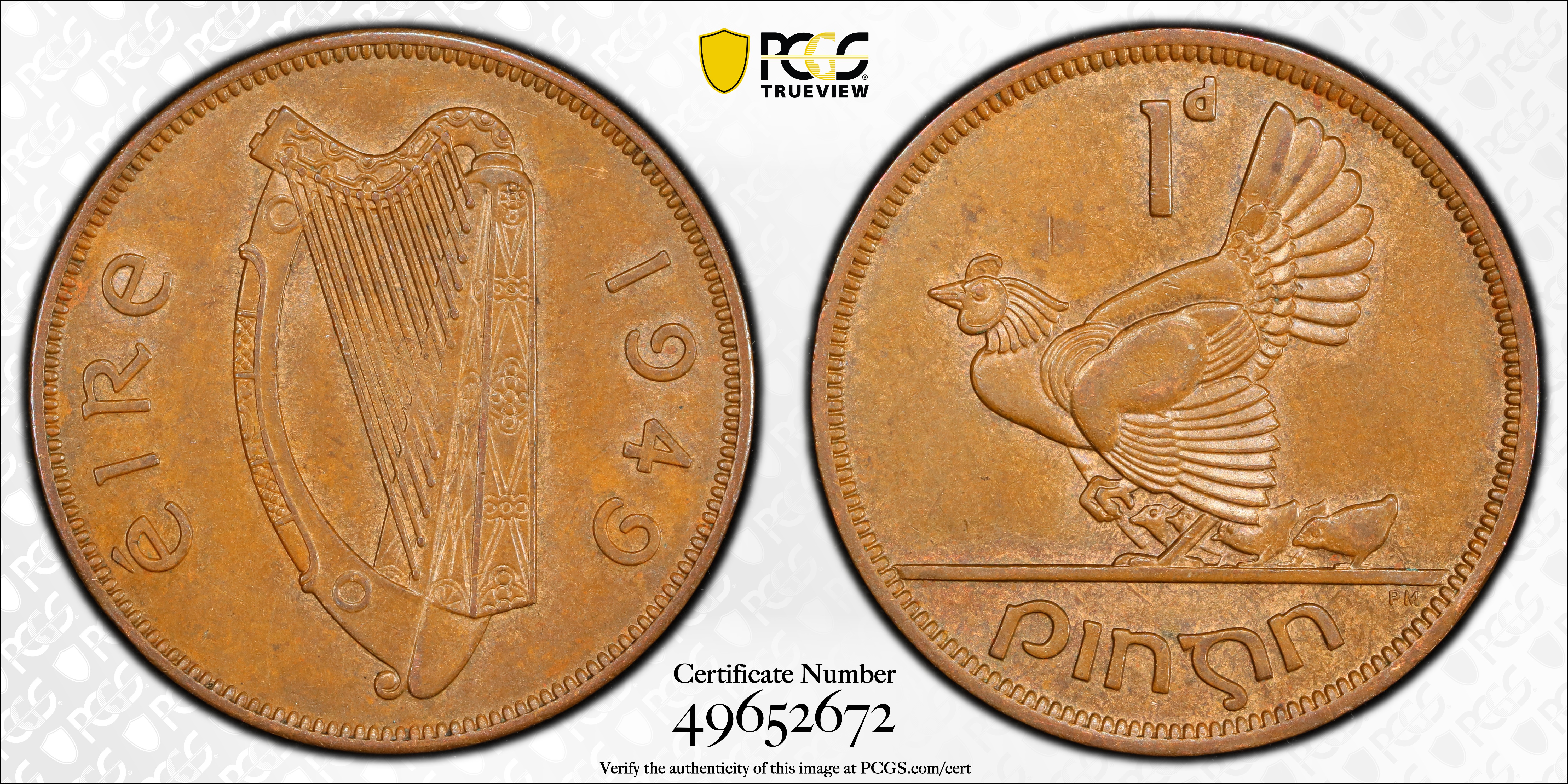 1949 1D, BN AU58BN 认证号49652672, PCGS号827172