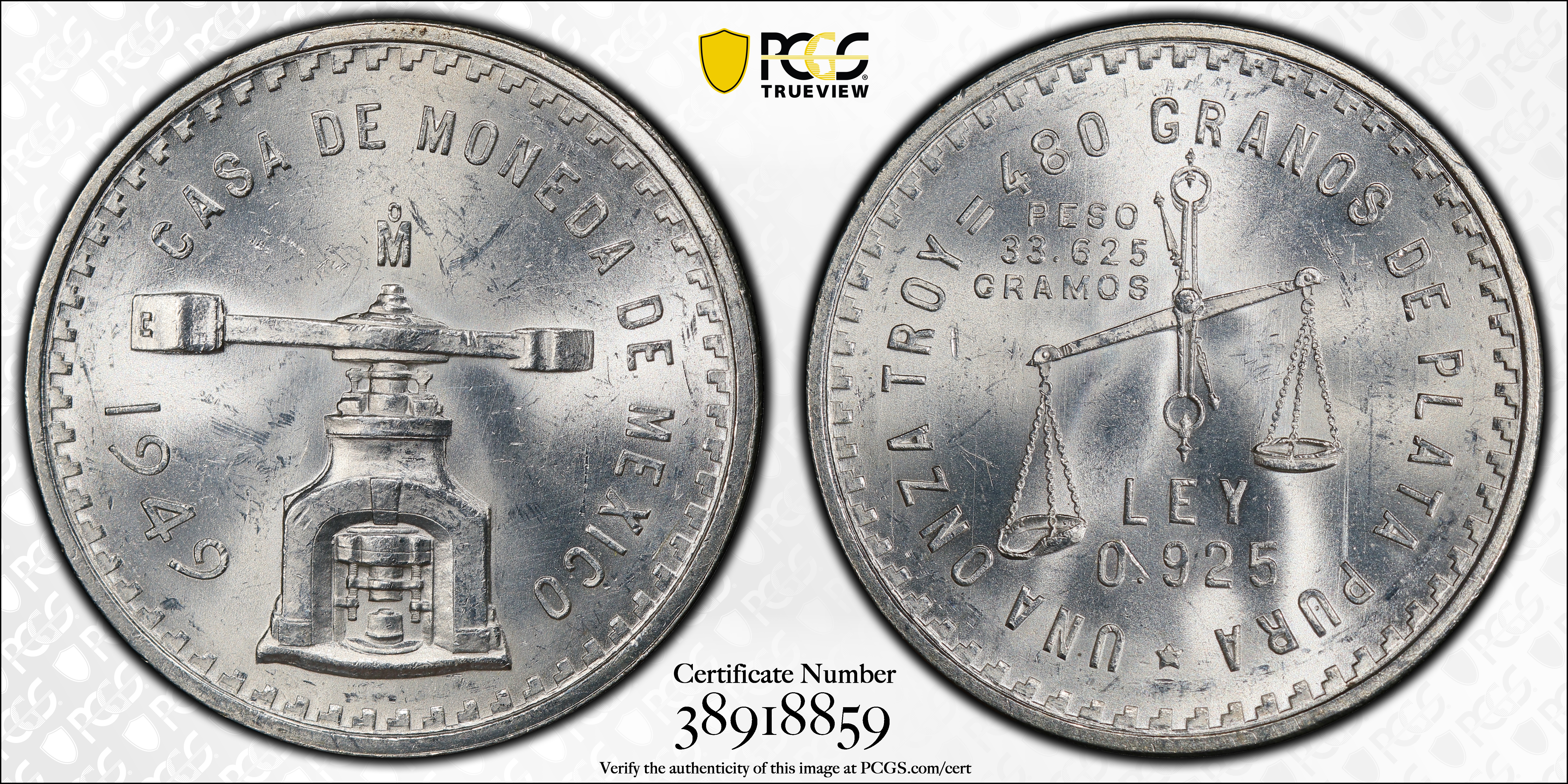 1949-Mo Onza KM-M49a MS64 认证号38918859, PCGS号526421