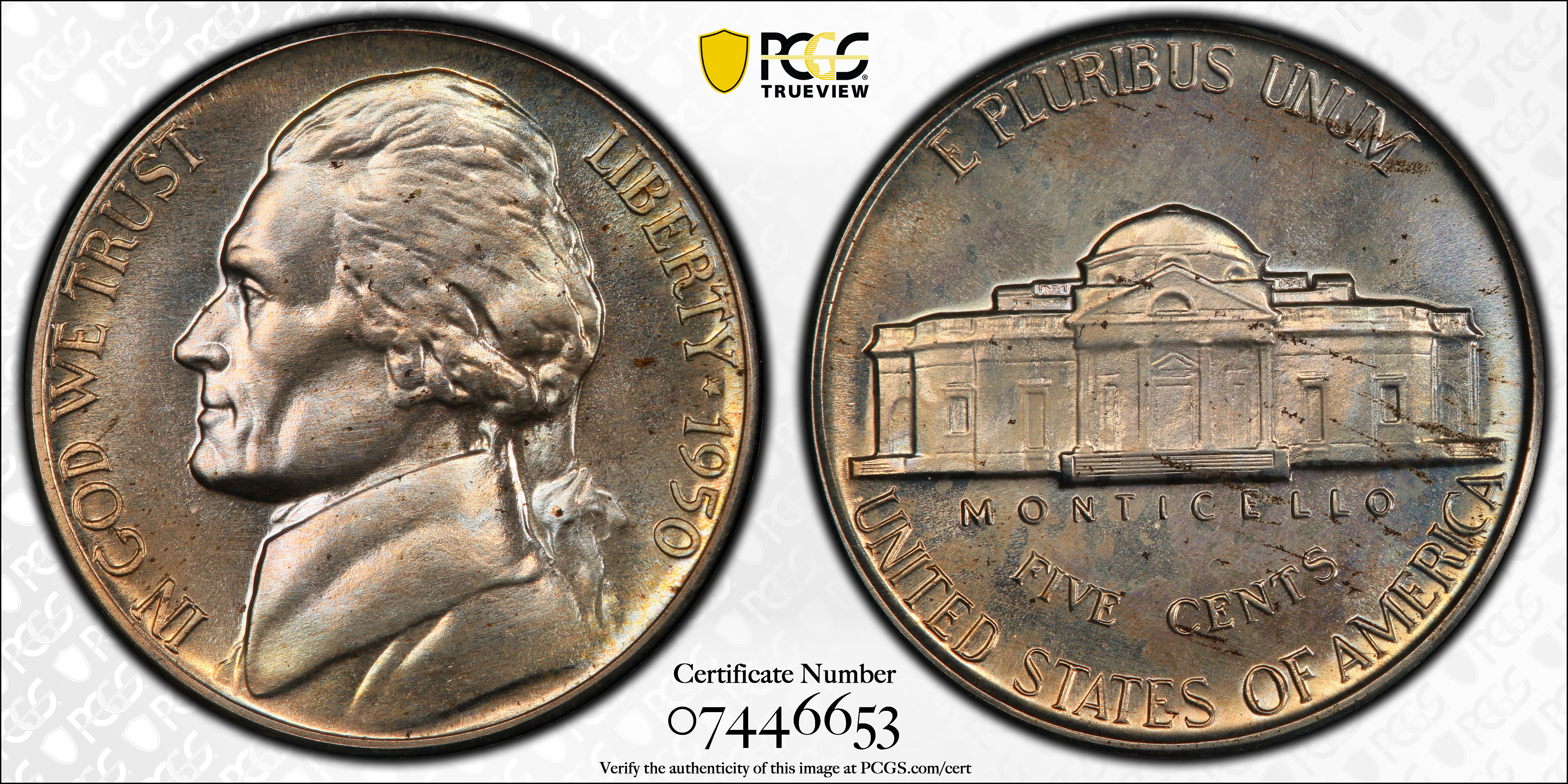 1950 5C PR65 认证号07446653, PCGS号4182