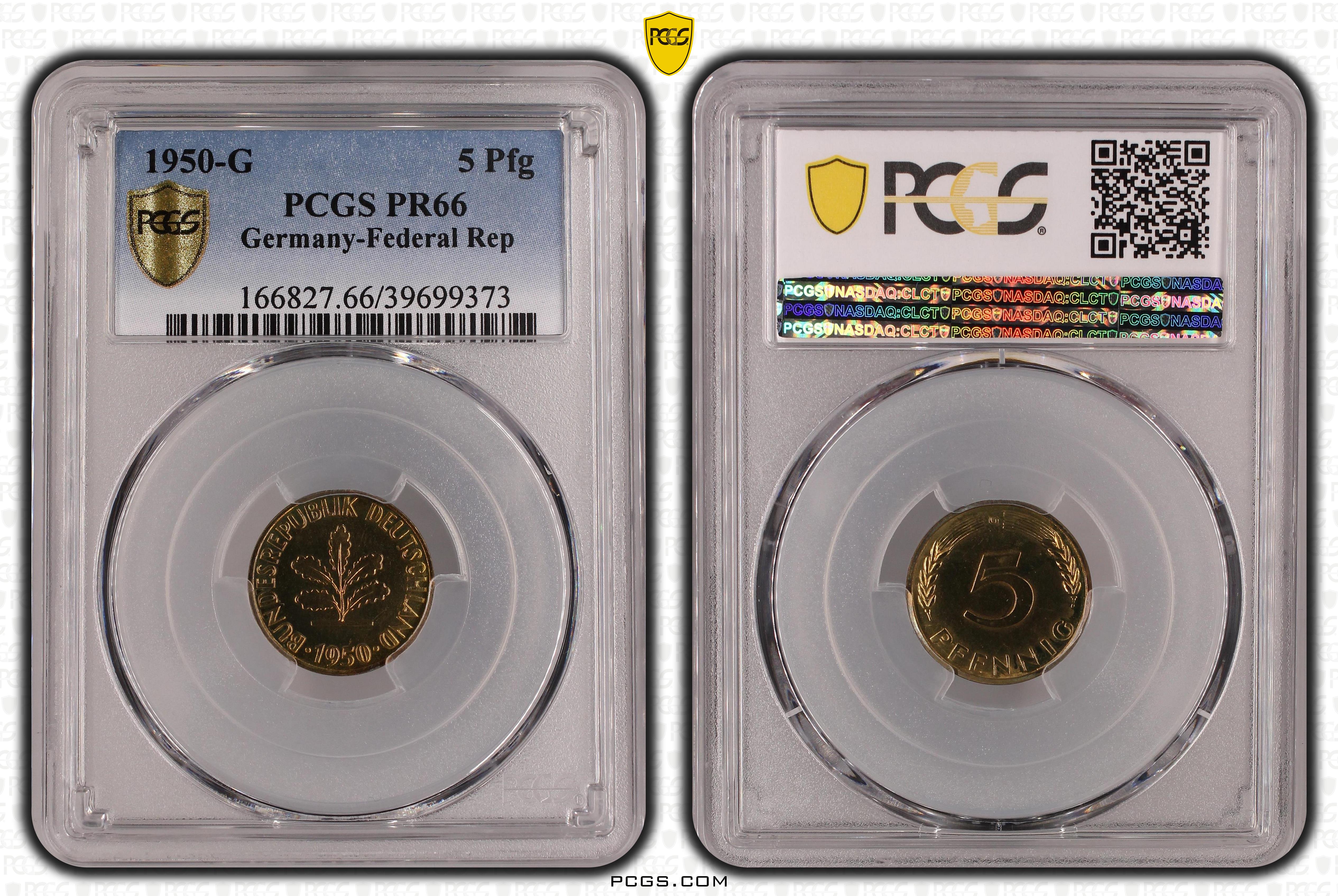 1950-G 5 Pfg PR66 认证号39699373, PCGS号166827