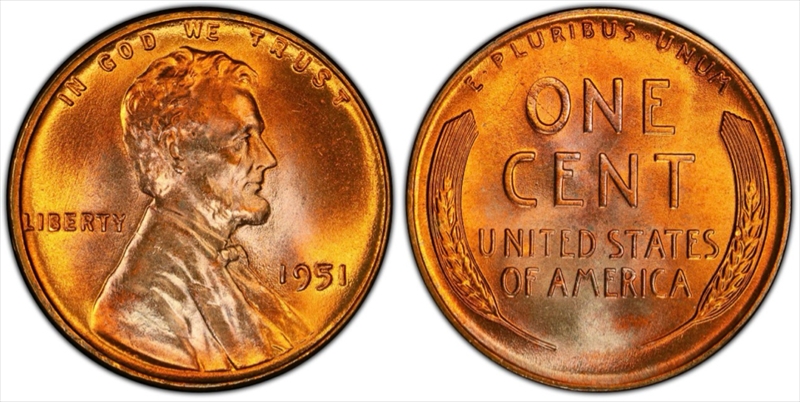 1951 1C, RD MS65RD 认证号42242274, PCGS号2788