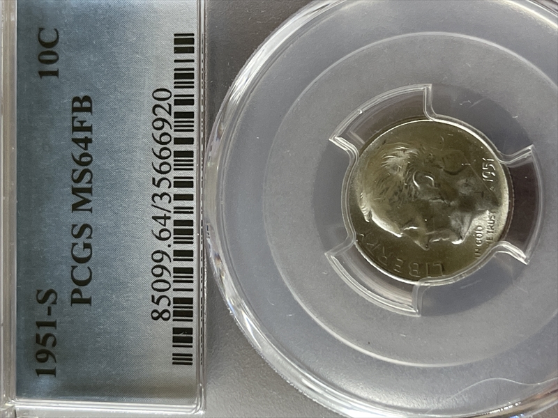 1951-S 10C, FB MS64FB 认证号35666920, PCGS号85099