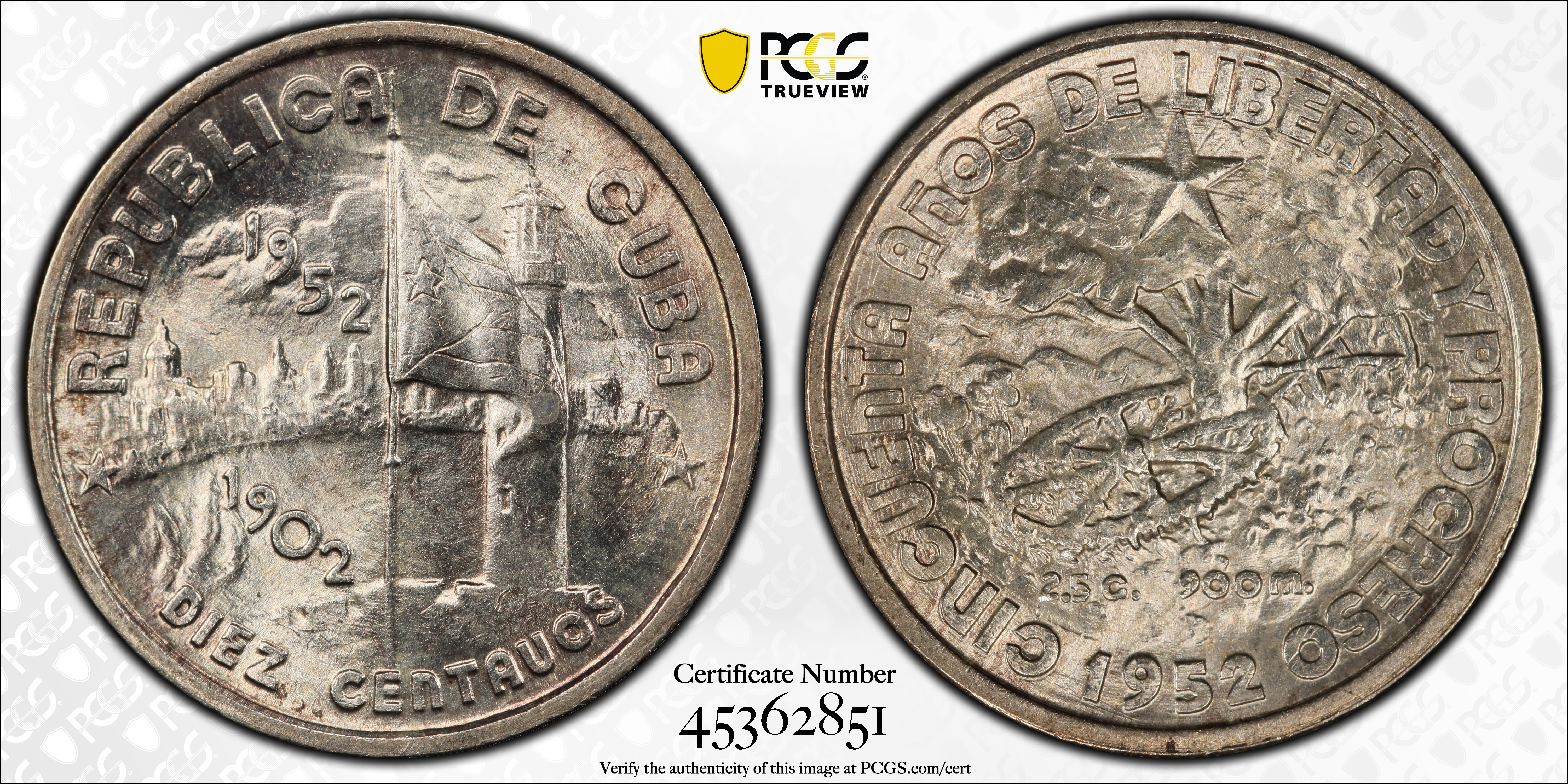 1952 10C Republic MS65 认证号45362851, PCGS号135737