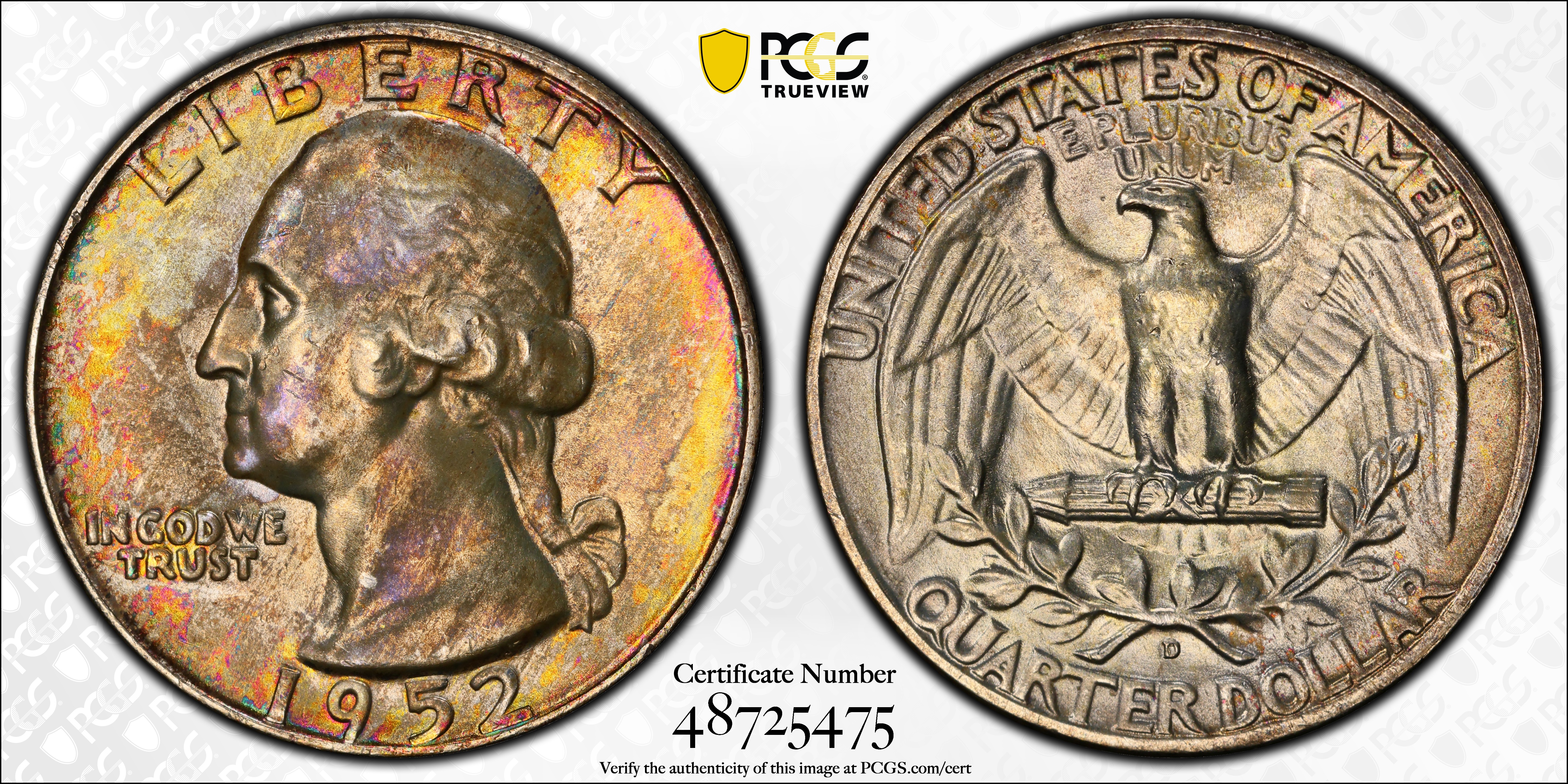 1952-D 25C MS66 认证号48725475, PCGS号5850