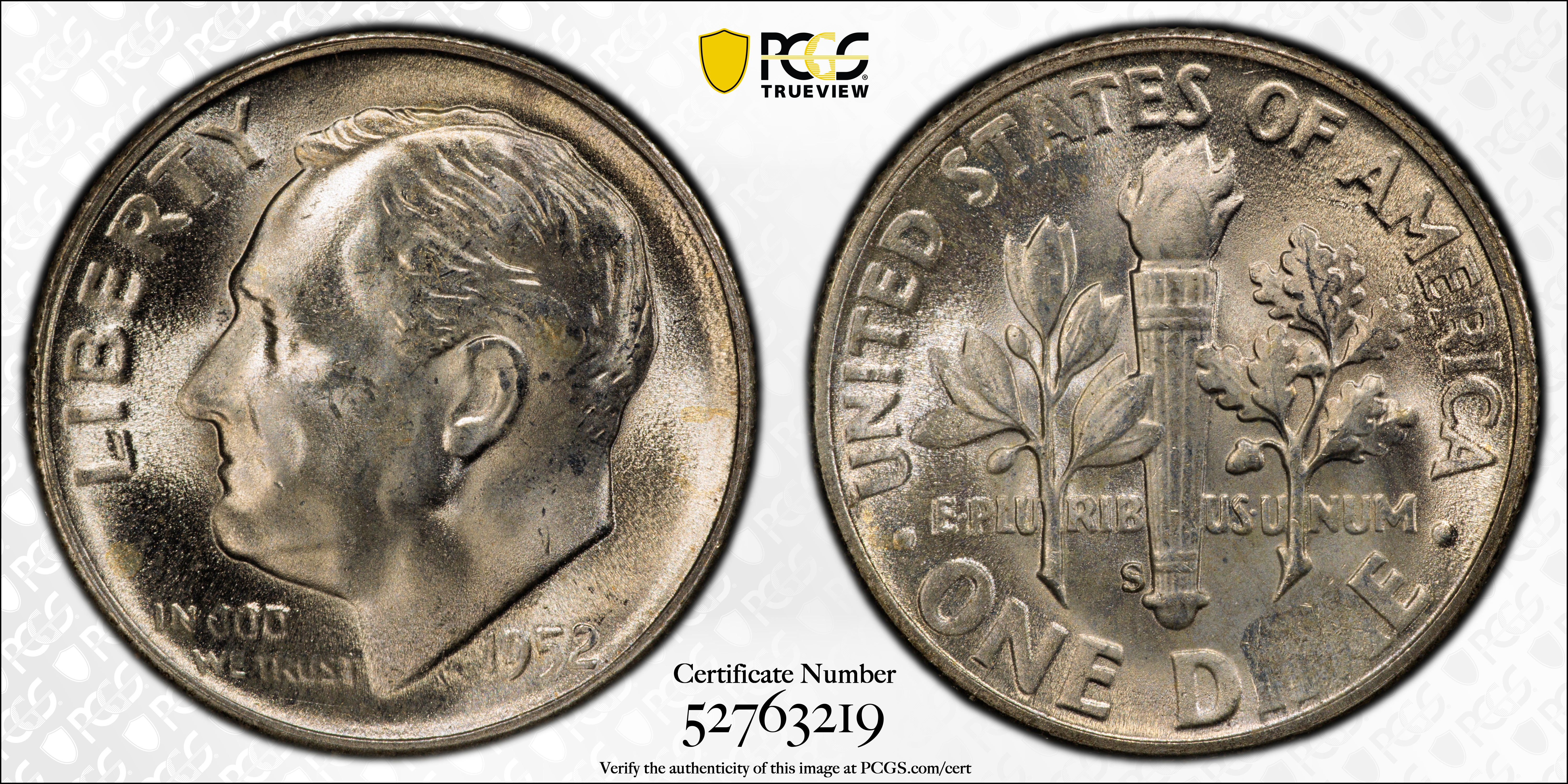 1952-S 10C, FB MS65FB 认证号52763219, PCGS号85102