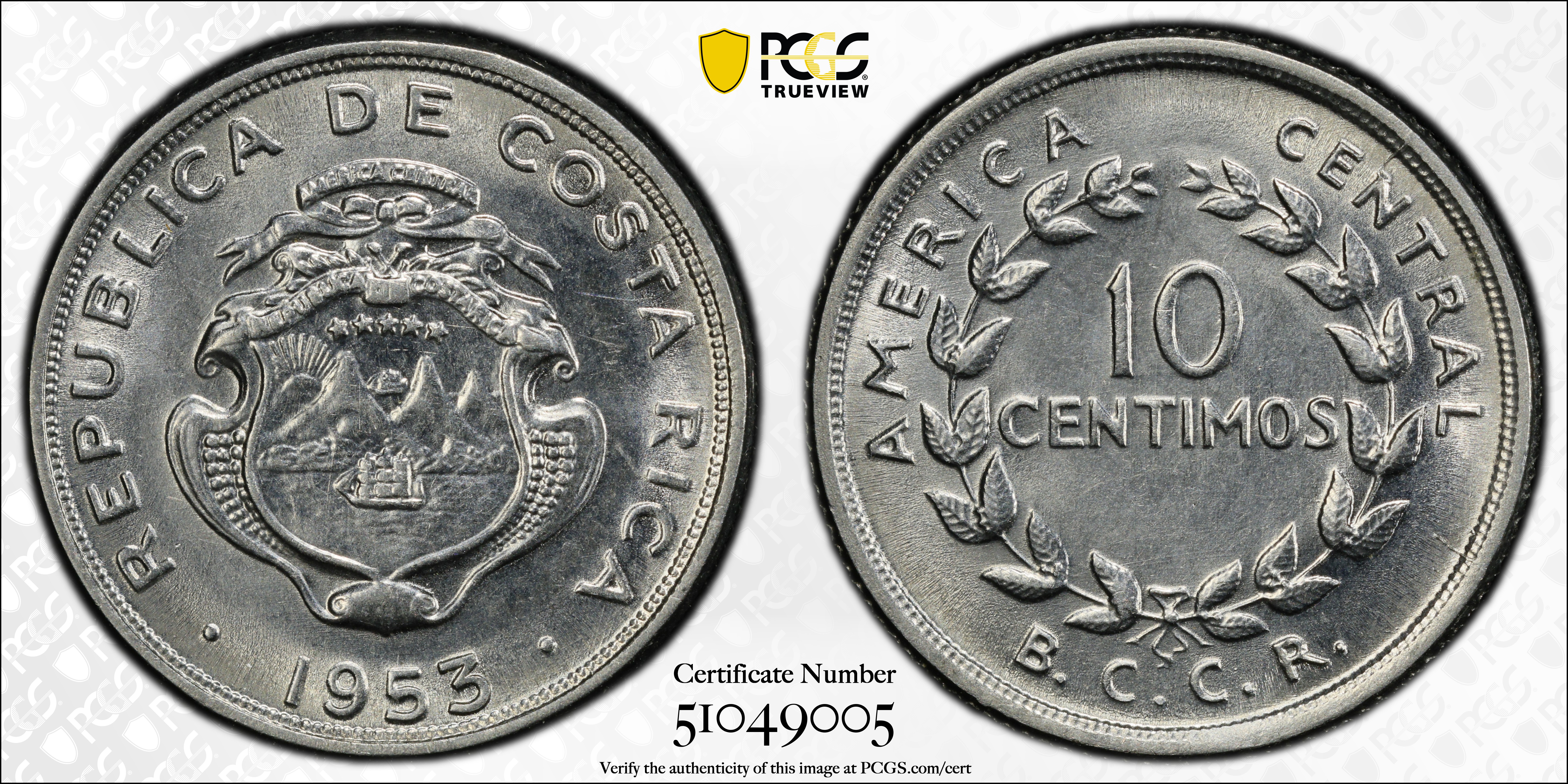 1953-BCCR 10C MS65 认证号51049005, PCGS号142762