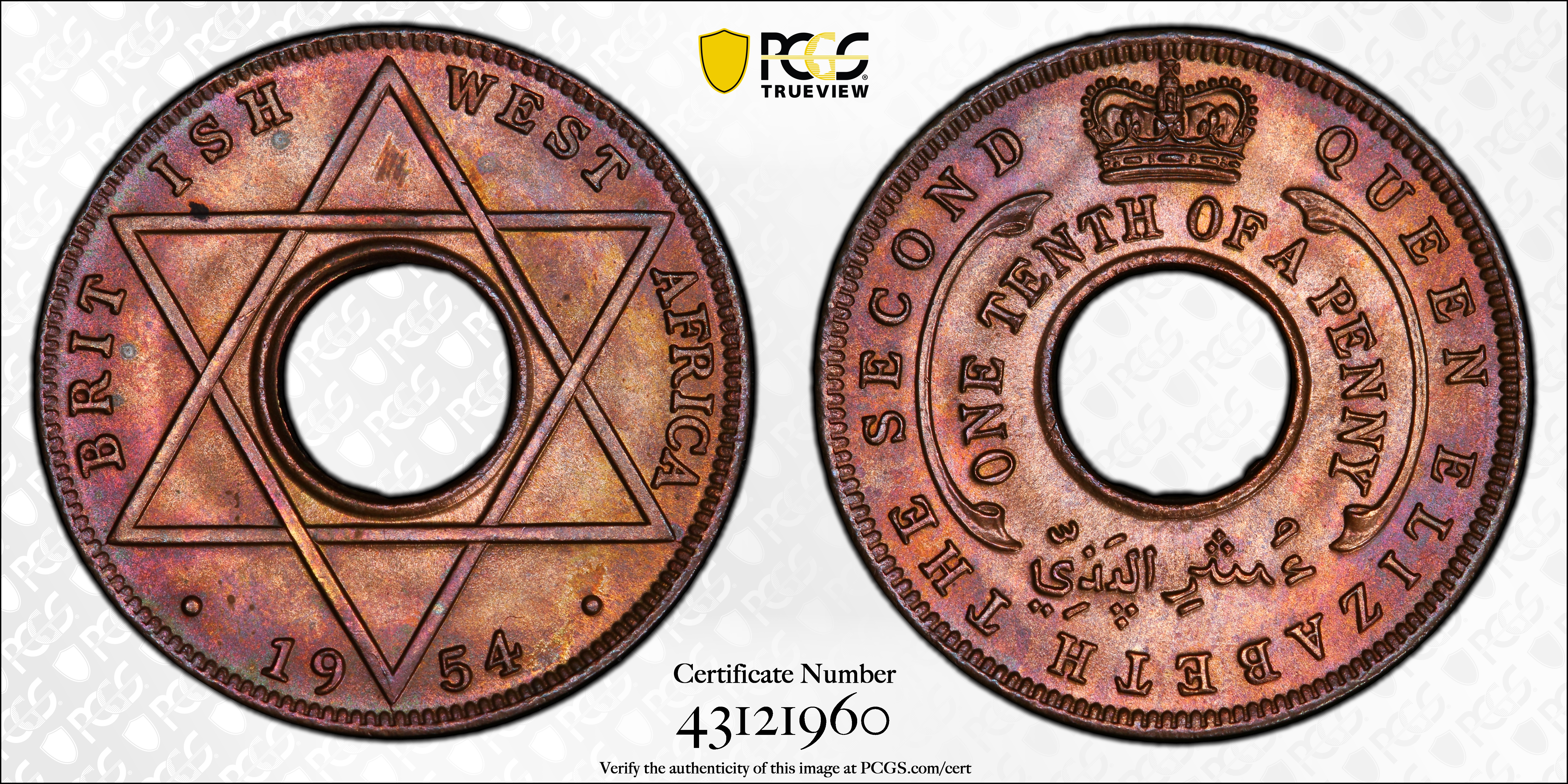 1954 1/10D, BN MS66BN 认证号43121960, PCGS号851799