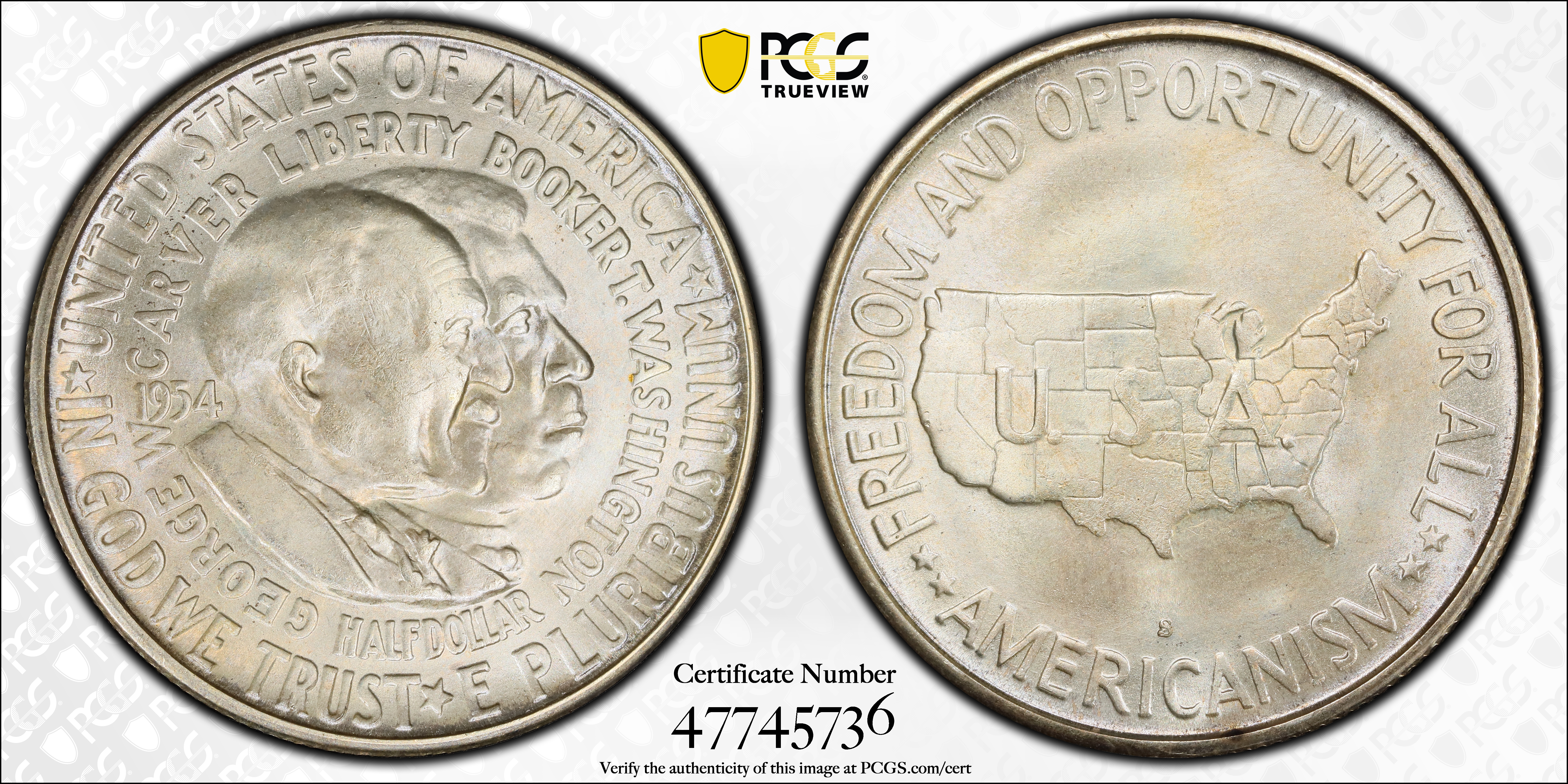 1954-S 50C Washington-Carver MS67 认证号47745736, PCGS号9444