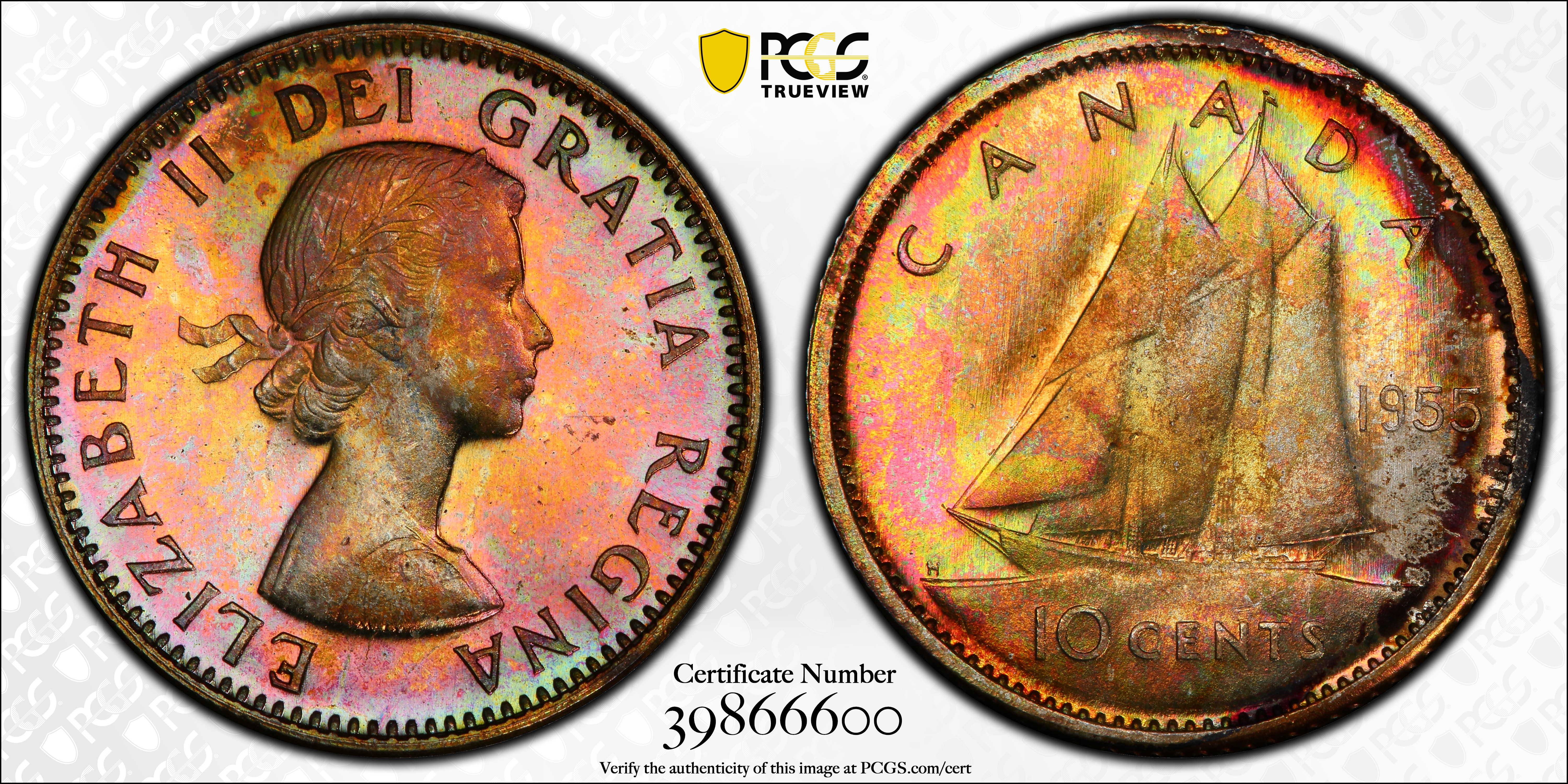 1955 10C MS65 认证号39866600, PCGS号31543