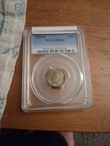 1955-D 10C MS66 认证号34316336, PCGS号5110