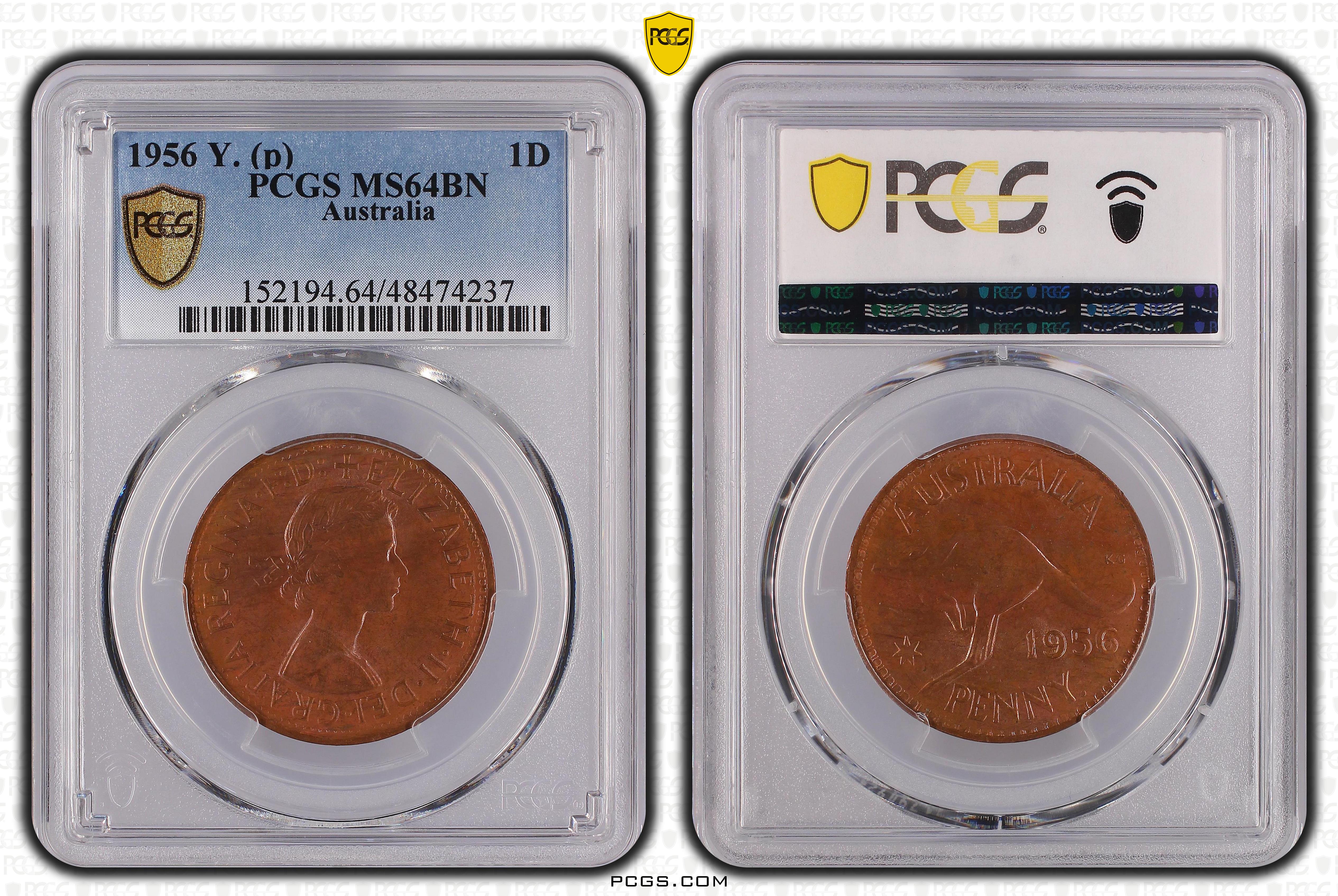 1956 Y. (p) 1D, BN MS64BN 认证号48474237, PCGS号152194