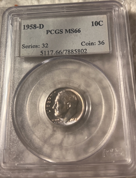 1958-D 10C MS66 认证号07885802, PCGS号5117