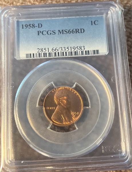 1958-D 1C, RD MS66RD 认证号33519583, PCGS号2851