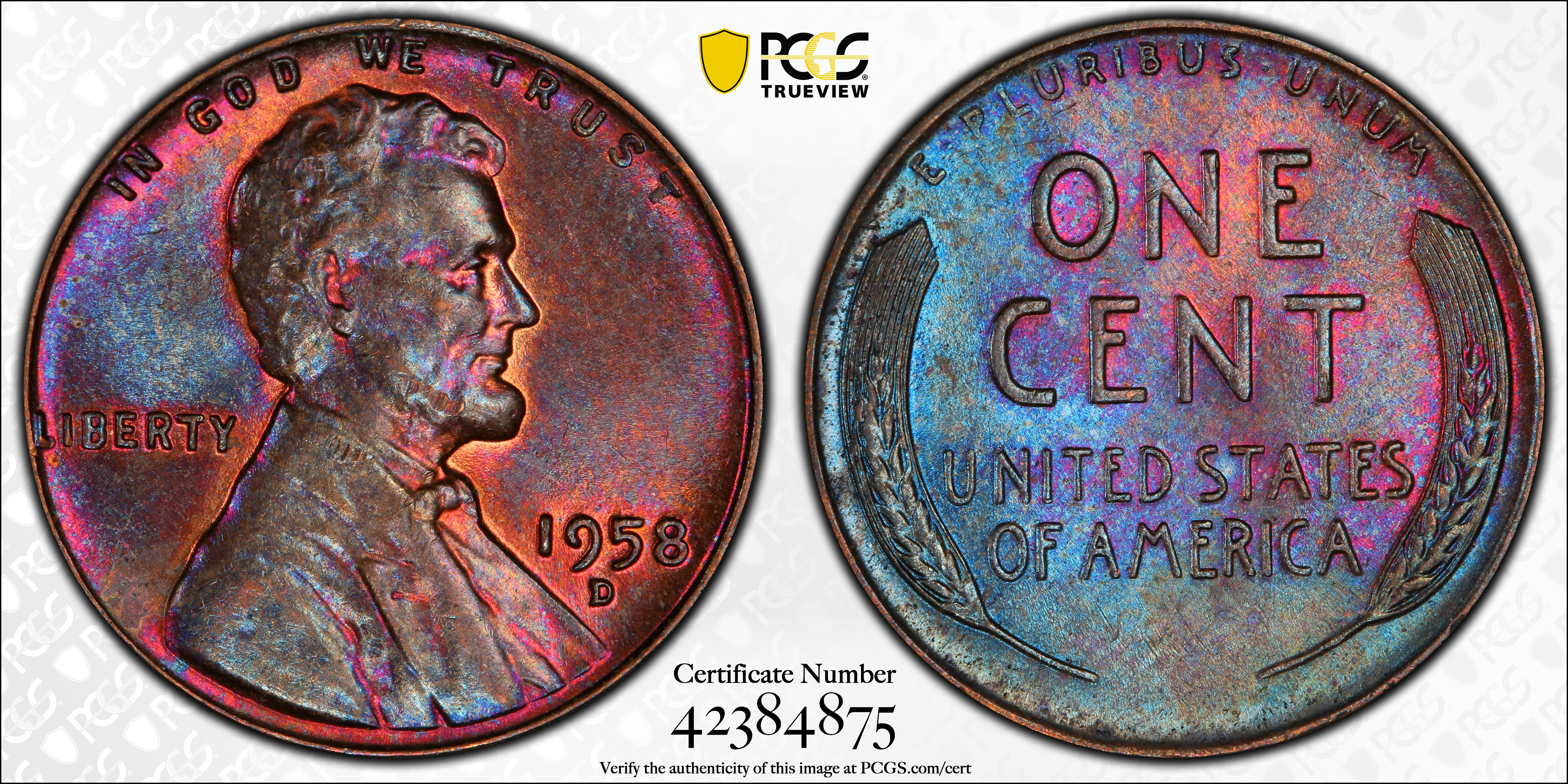 1958-D 1C, BN MS65BN 认证号42384875, PCGS号2849