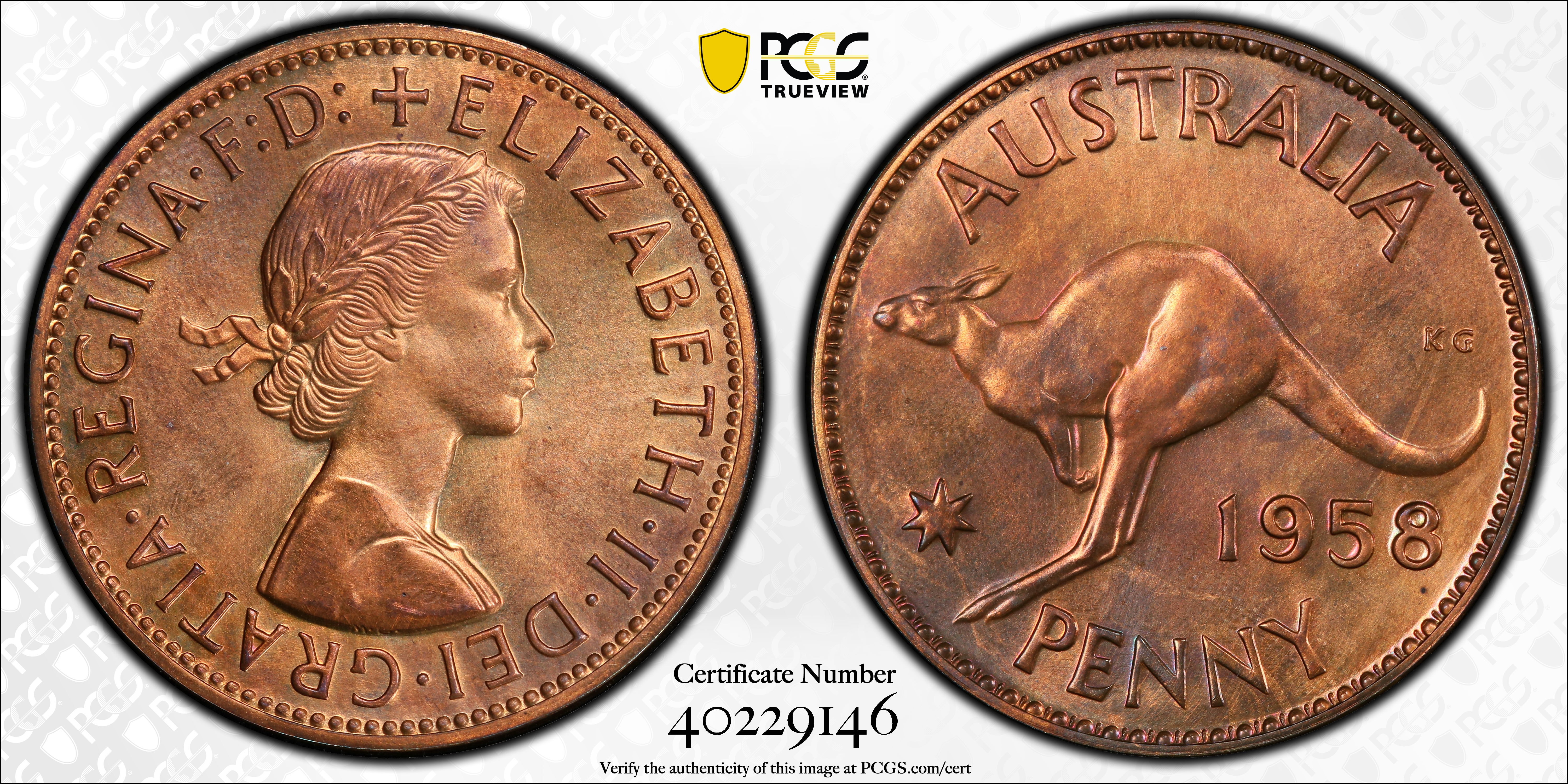 1958 (m) 1D, RB PR65RB 认证号40229146, PCGS号143877