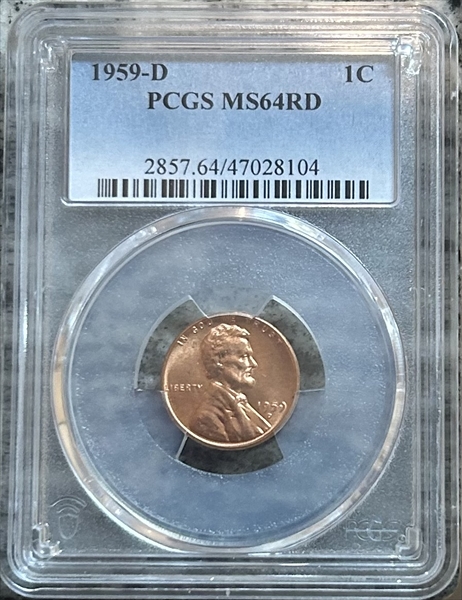 1959-D 1C, RD MS64RD 认证号47028104, PCGS号2857
