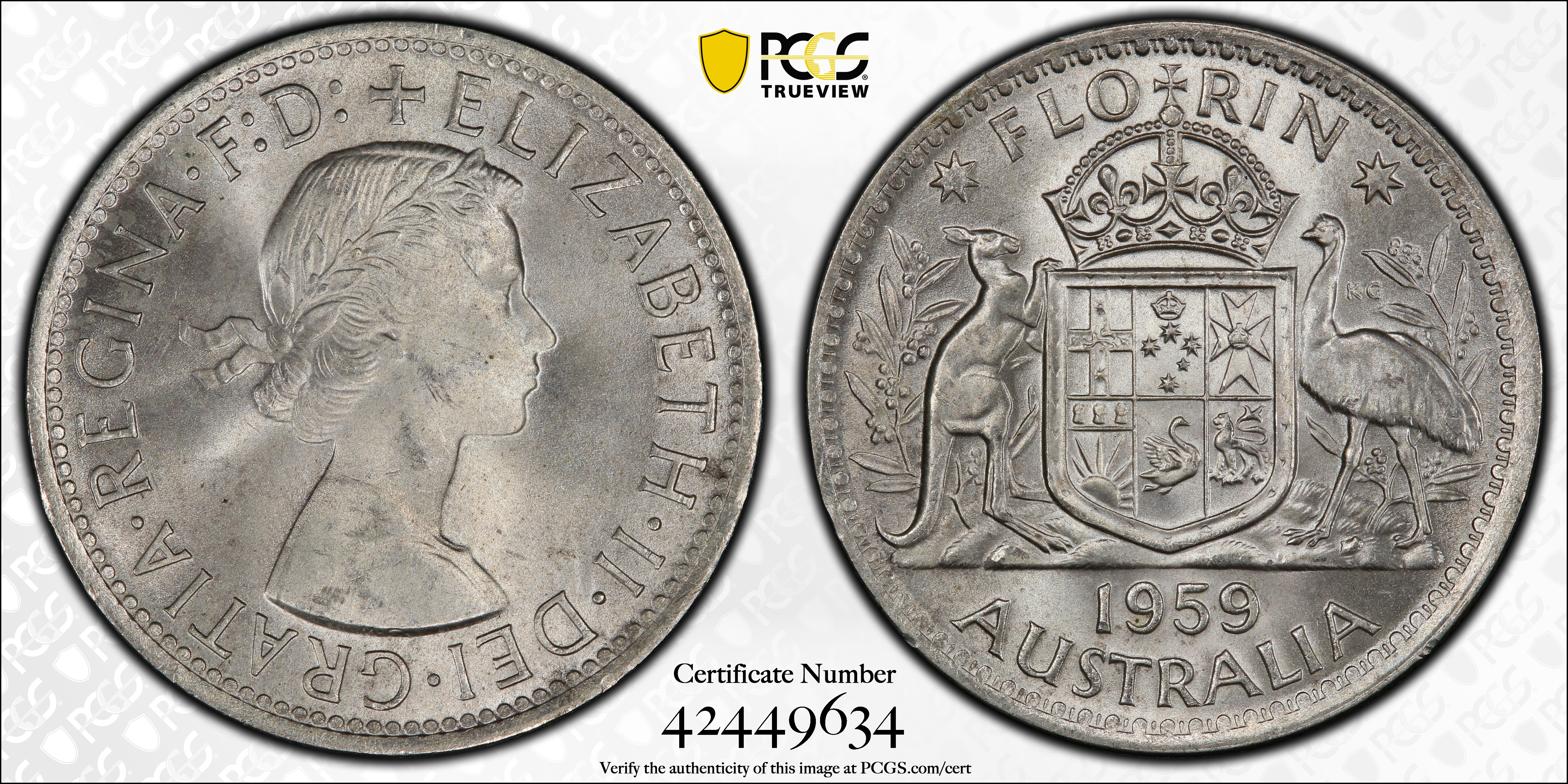 1959(m) Florin KM-60 Ag MS64 认证号42449634, PCGS号152308