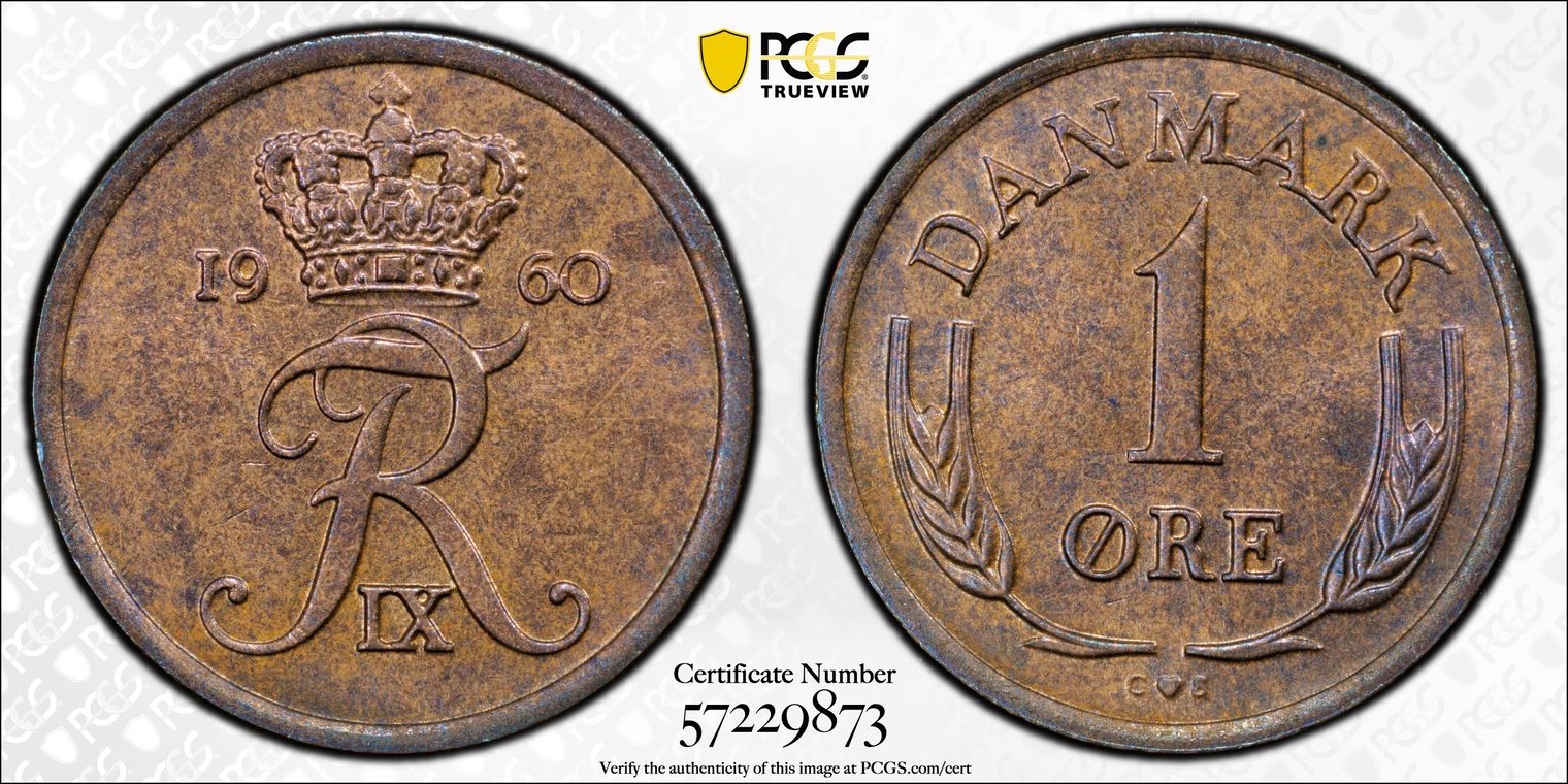 1960 CS Øre KM-846 Bronze, BN MS65BN 认证号57229873, PCGS号477891