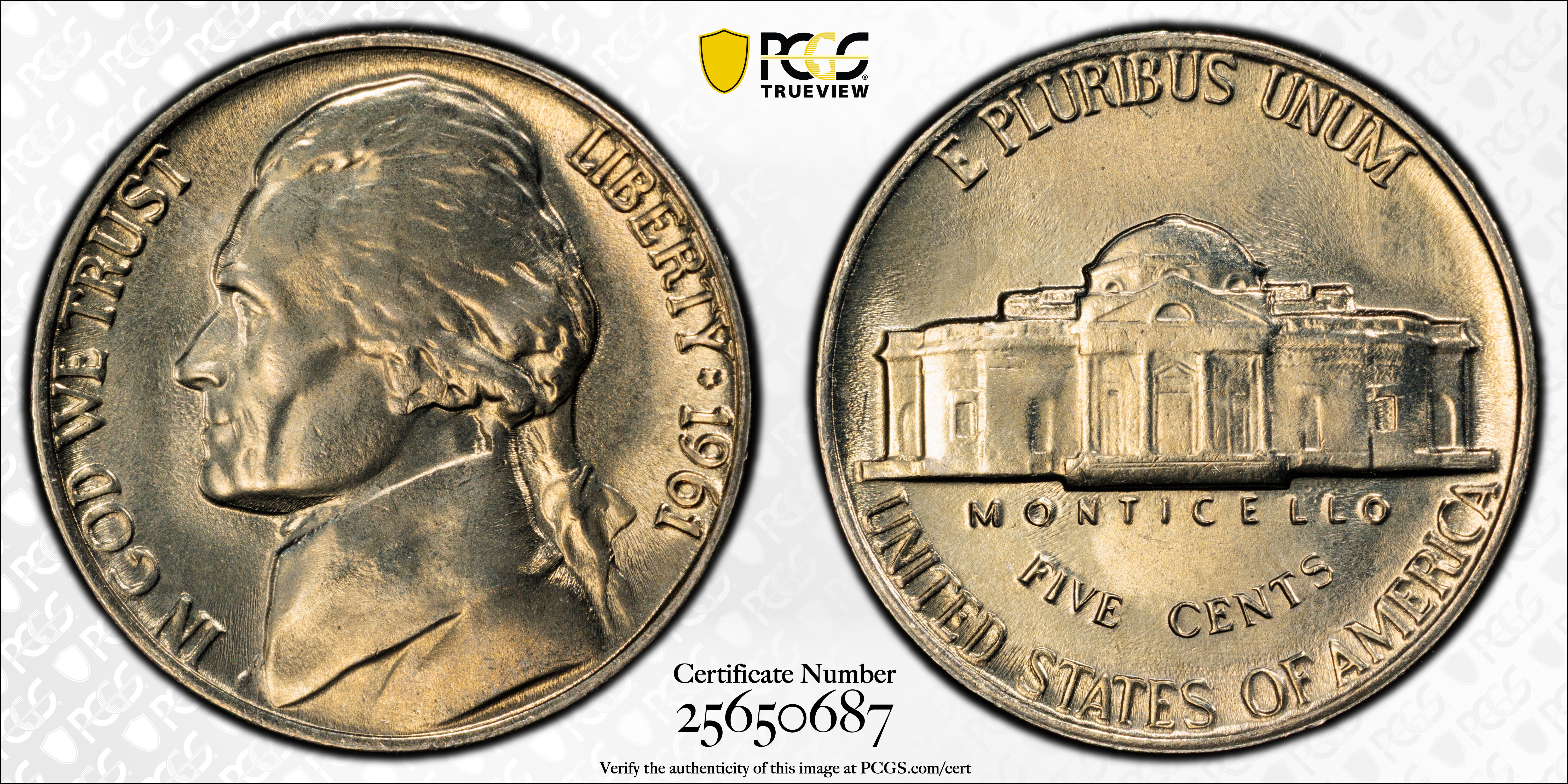 1961 5C MS67+ 认证号25650687, PCGS号4069