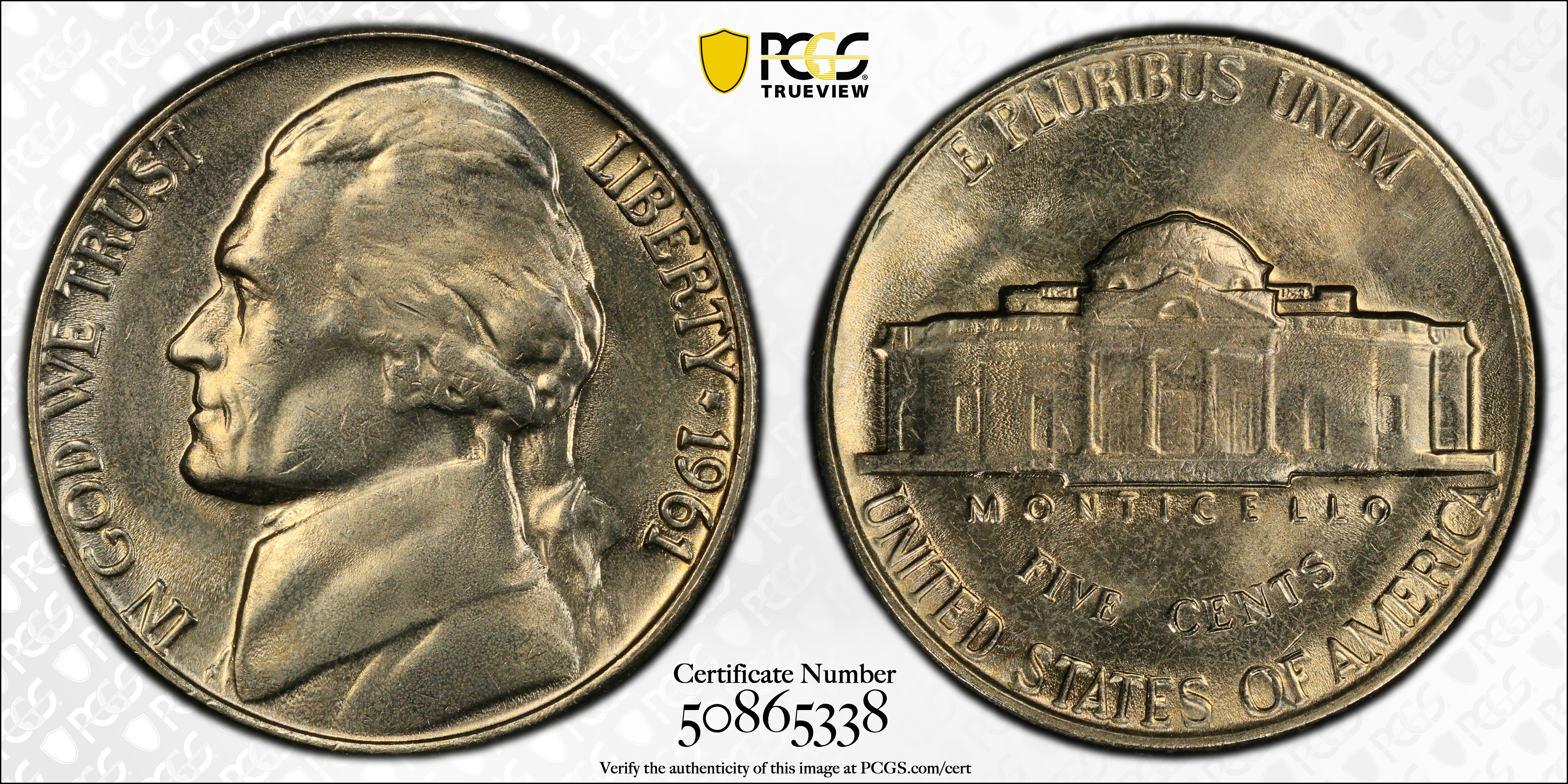 1961 5C MS65 认证号50865338, PCGS号4069