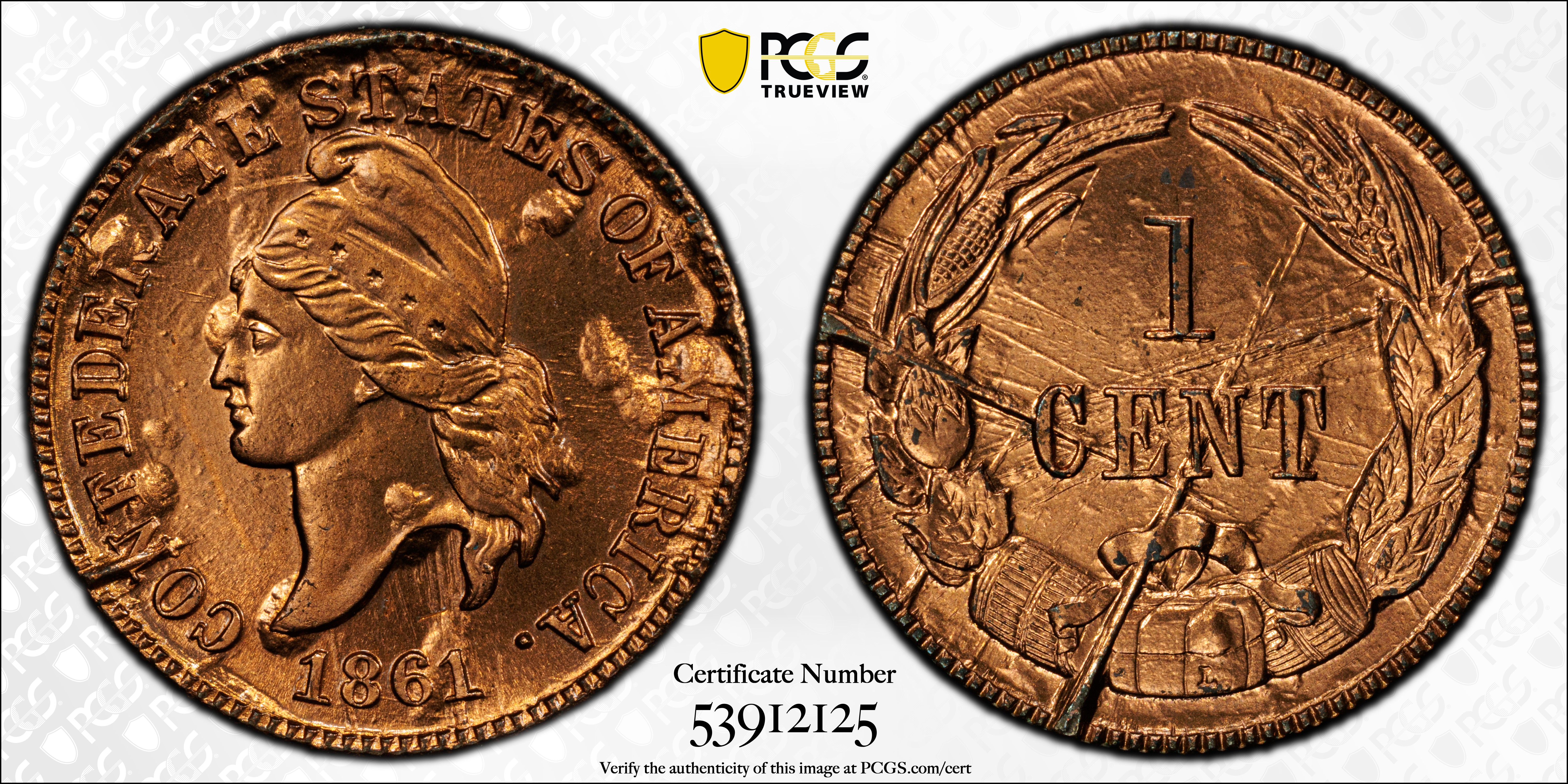 (1961) CSA 1C Bashlow Restrike, Bronze, RD MS66RD 认证号53912125, PCGS号527916