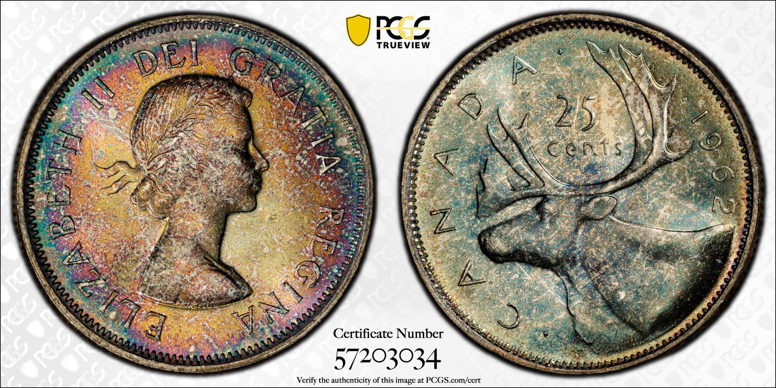 1962 25C MS64 认证号57203034, PCGS号160384