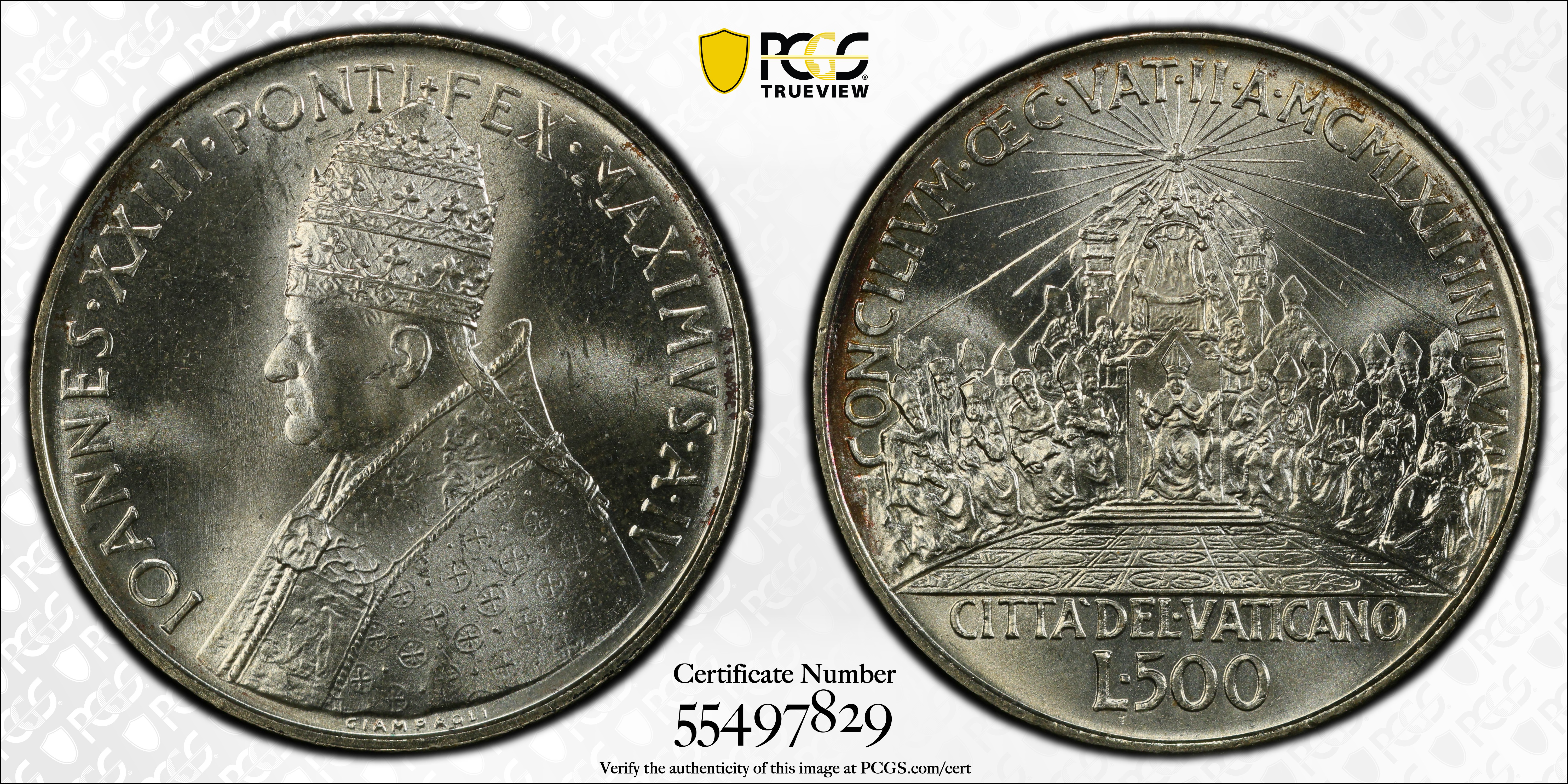 1962 500 L Ecumenical Council Anno IV MS64 认证号55497829, PCGS号424293