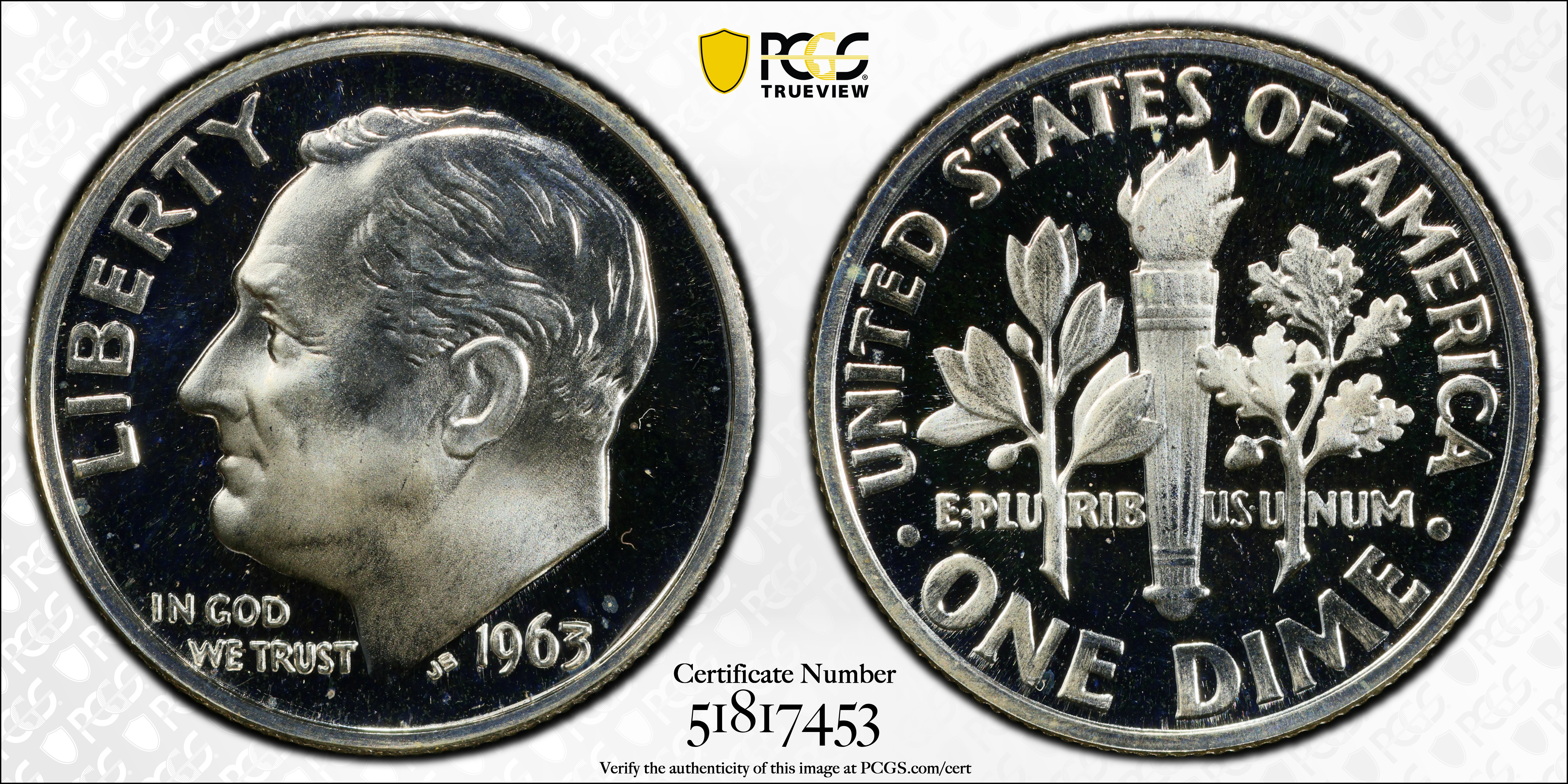 1963 10C, DCAM PR67DCAM 认证号51817453, PCGS号95238