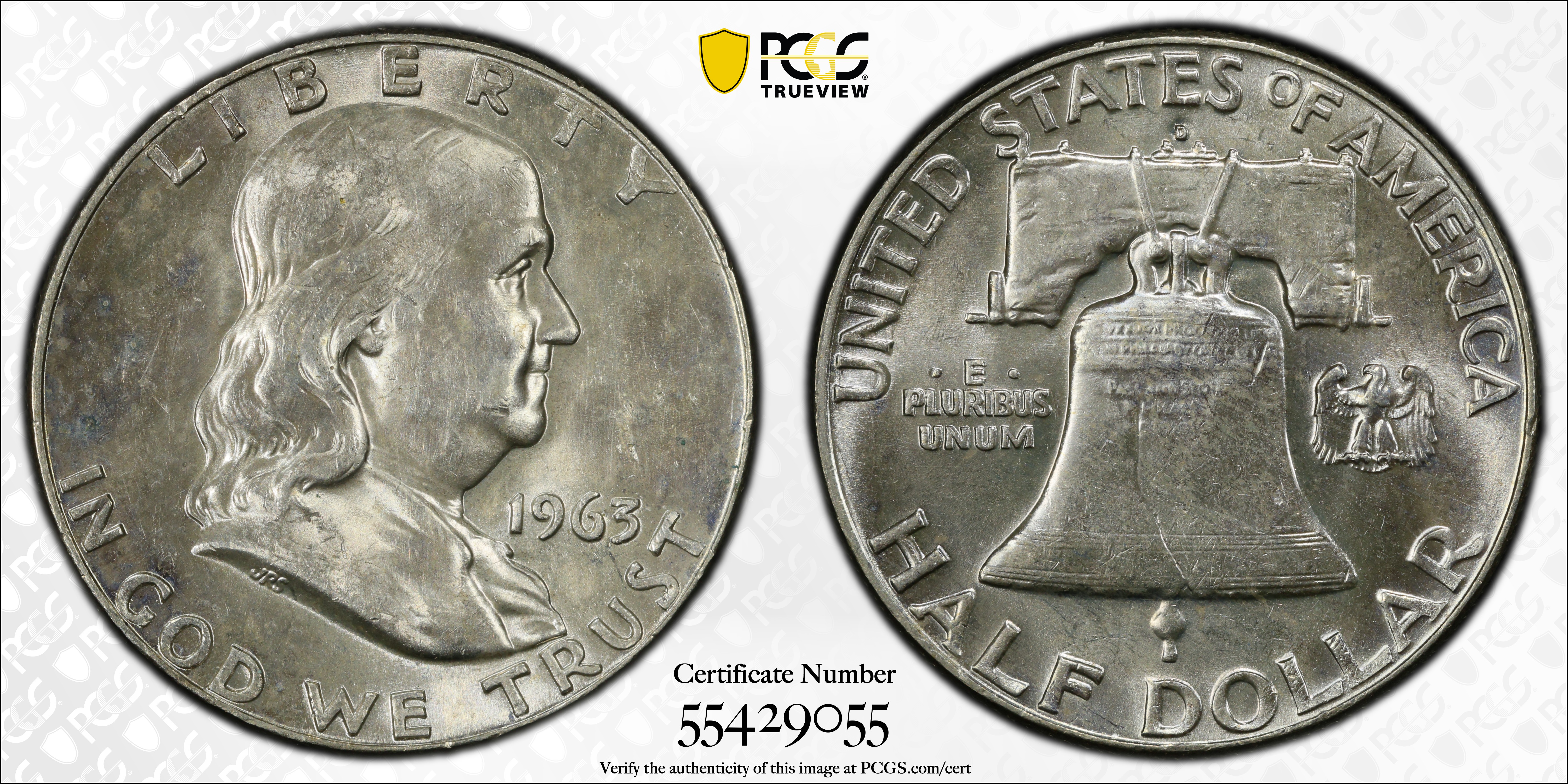1963-D 50C N1 认证号55429055, PCGS号6685