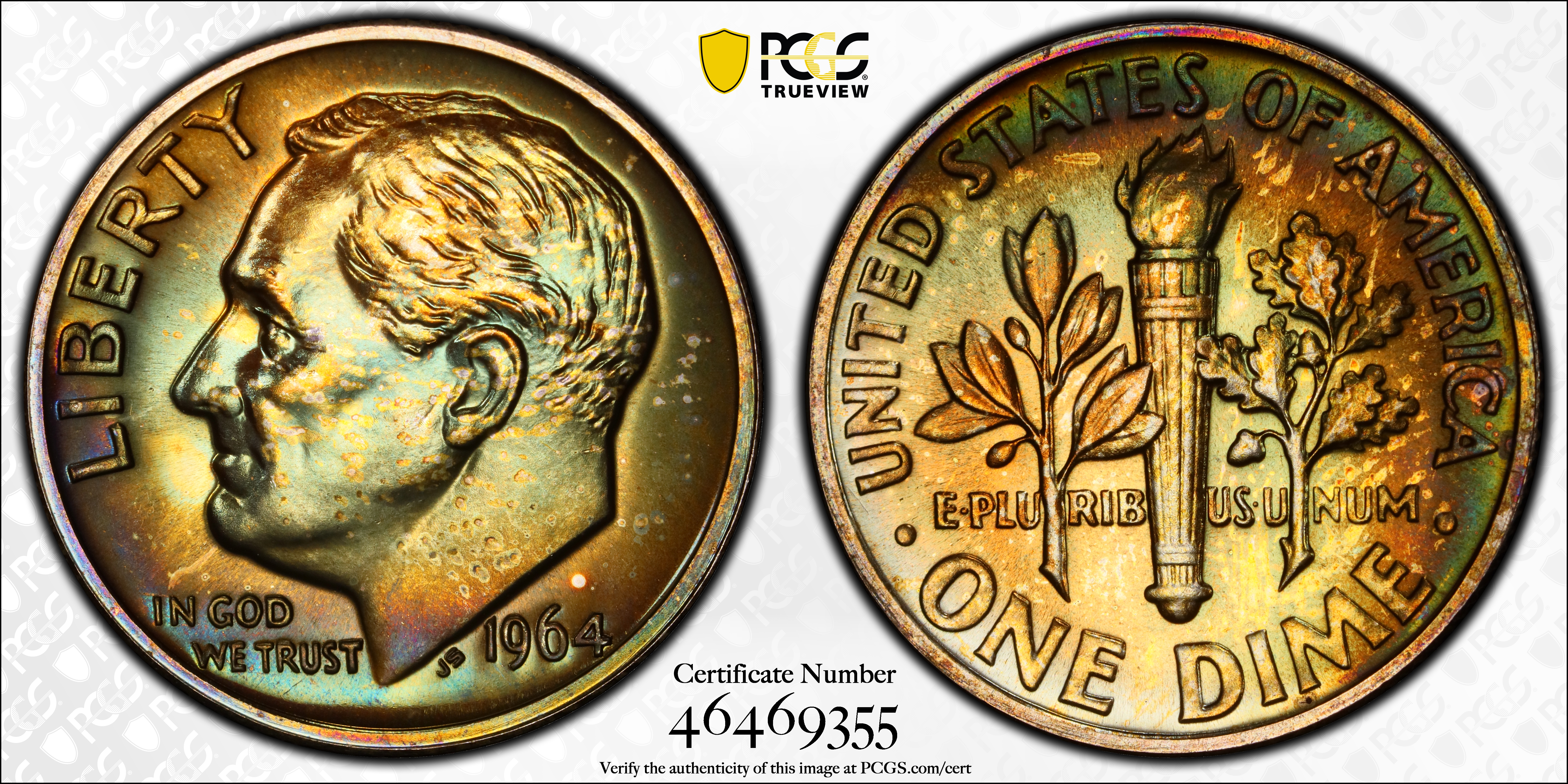 1964 10C PR65 认证号46469355, PCGS号5239