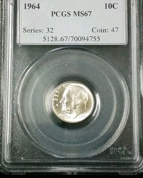 1964 10C MS67 认证号70094755, PCGS号5128
