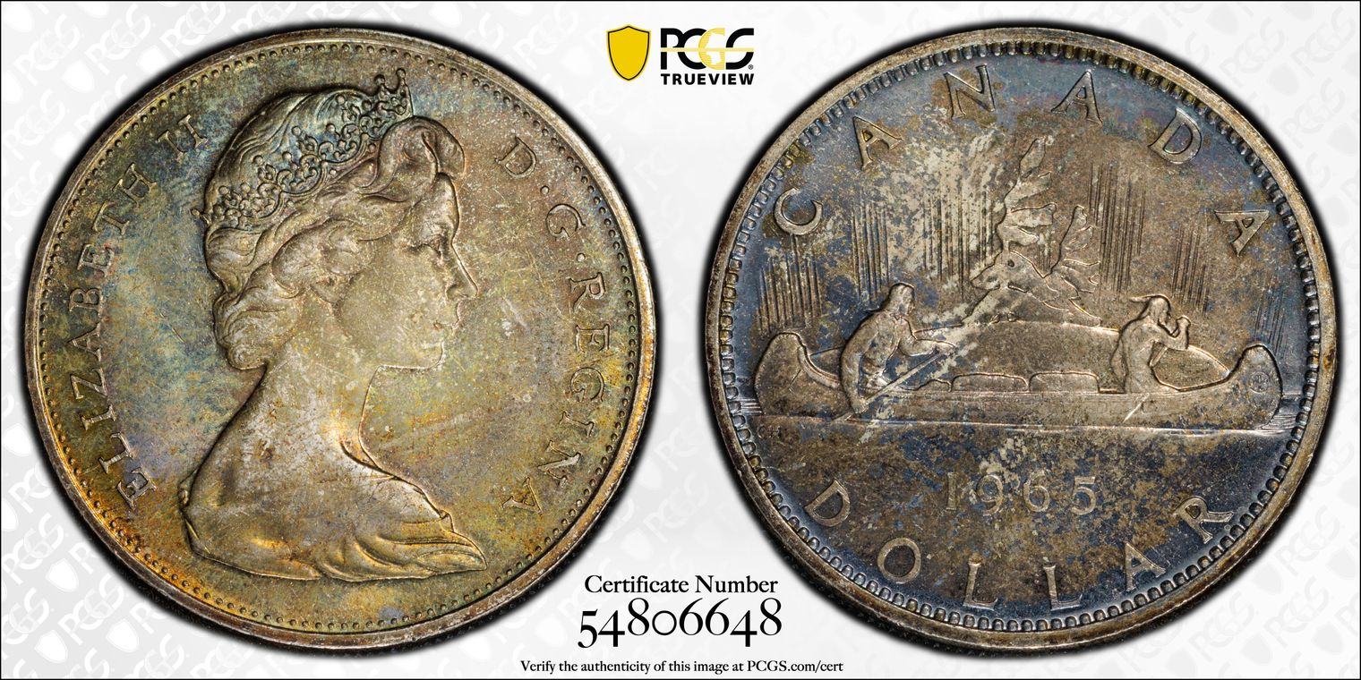 1965 S$1 Type 2 Sm Beads, Bl 5 MS64 认证号54806648, PCGS号32478