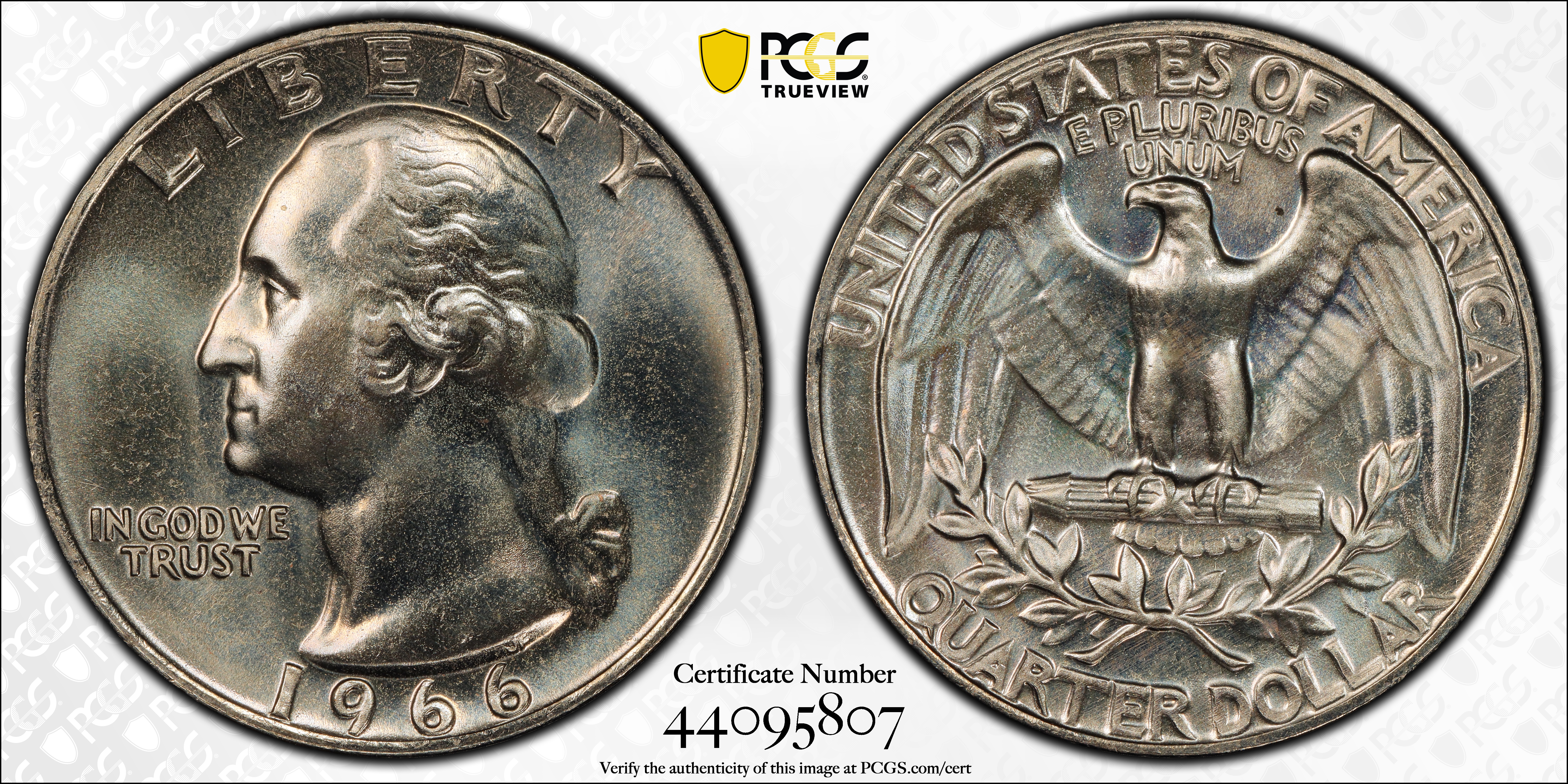 1966 25C SMS SP66 认证号44095807, PCGS号5998