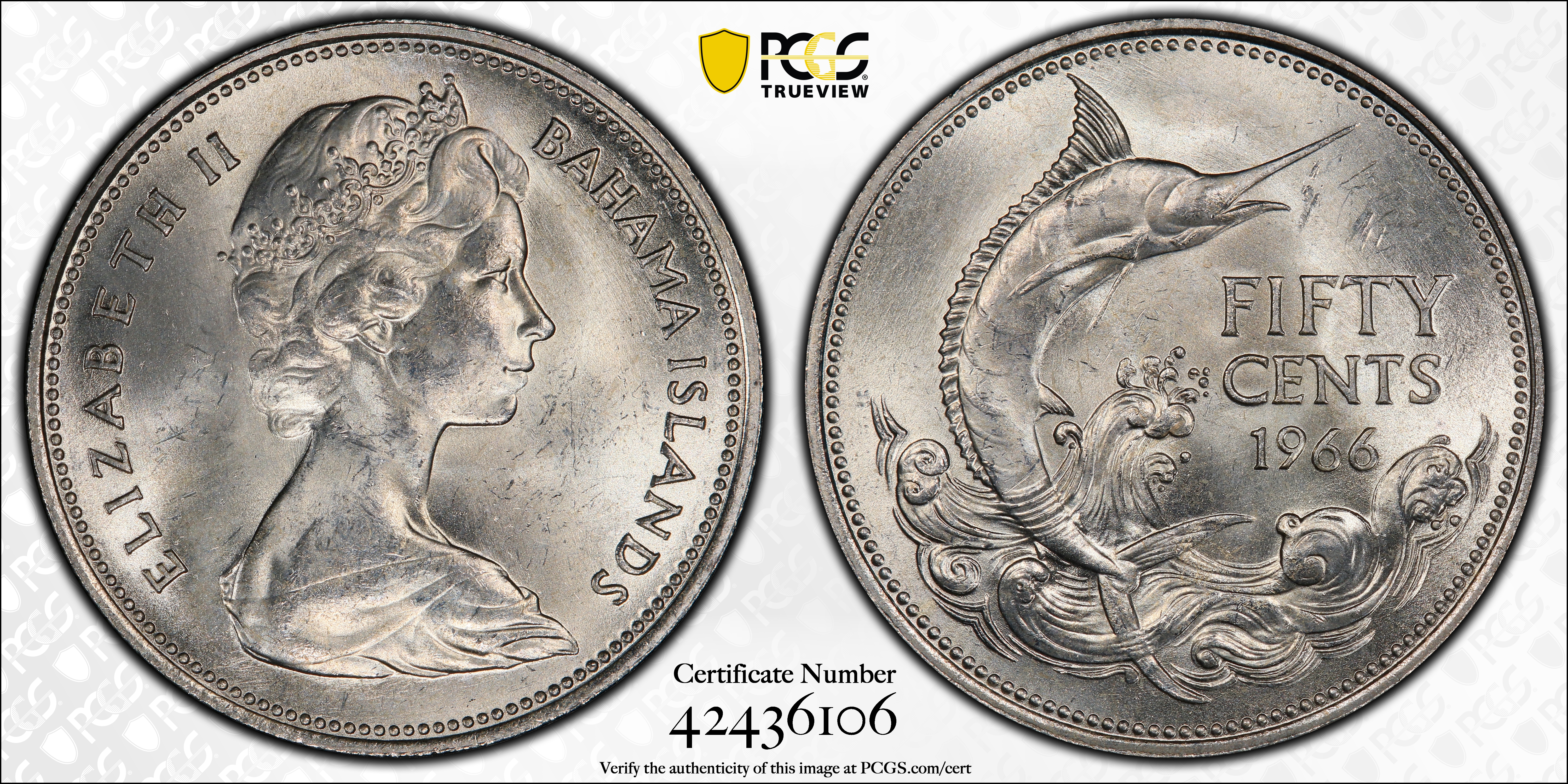 1966 50C MS63 认证号42436106, PCGS号272402