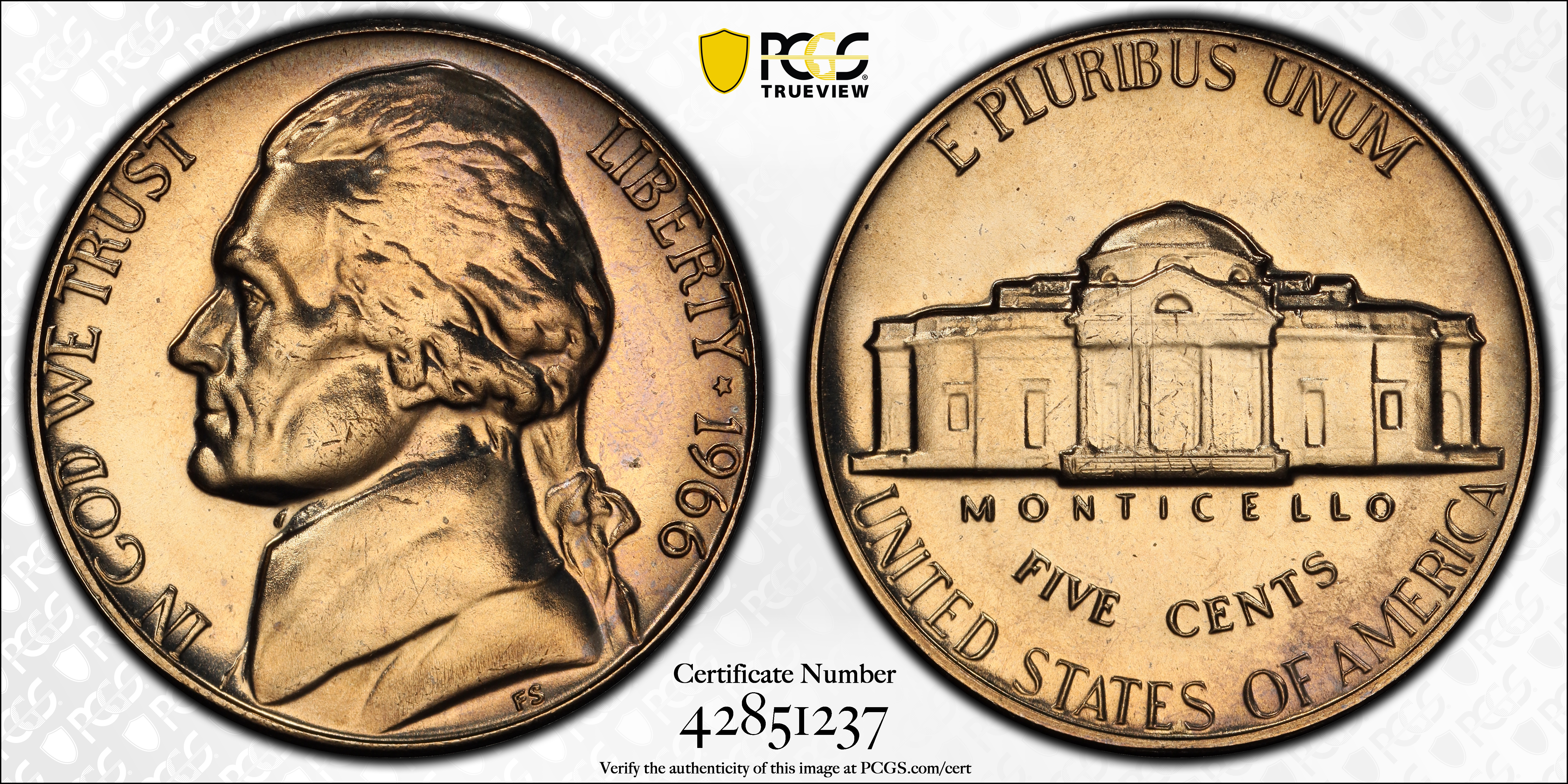 1966 5C SMS SP66 认证号42851237, PCGS号4198
